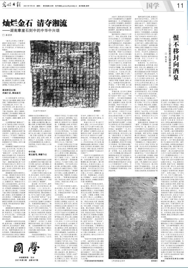 2021年7月5日,张京华教授《灿烂金石 清夺湘流》在《光明日报》国学版刊出。