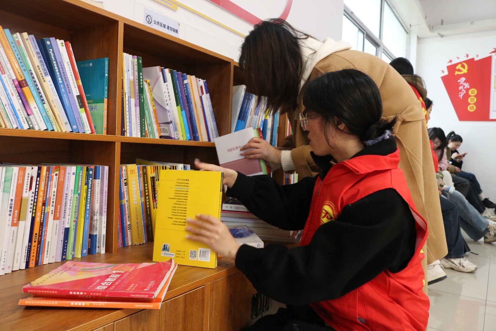 3月3日下午三点半活动正式开始,毕业生们积极响应、热情高涨、踊跃参与捐书活动专业书籍、文学名著、考研资料等各类书籍数百余册,在毕业生志愿者的共同努力下,琳琅满目的书籍整齐有序地摆放在指定书架上。