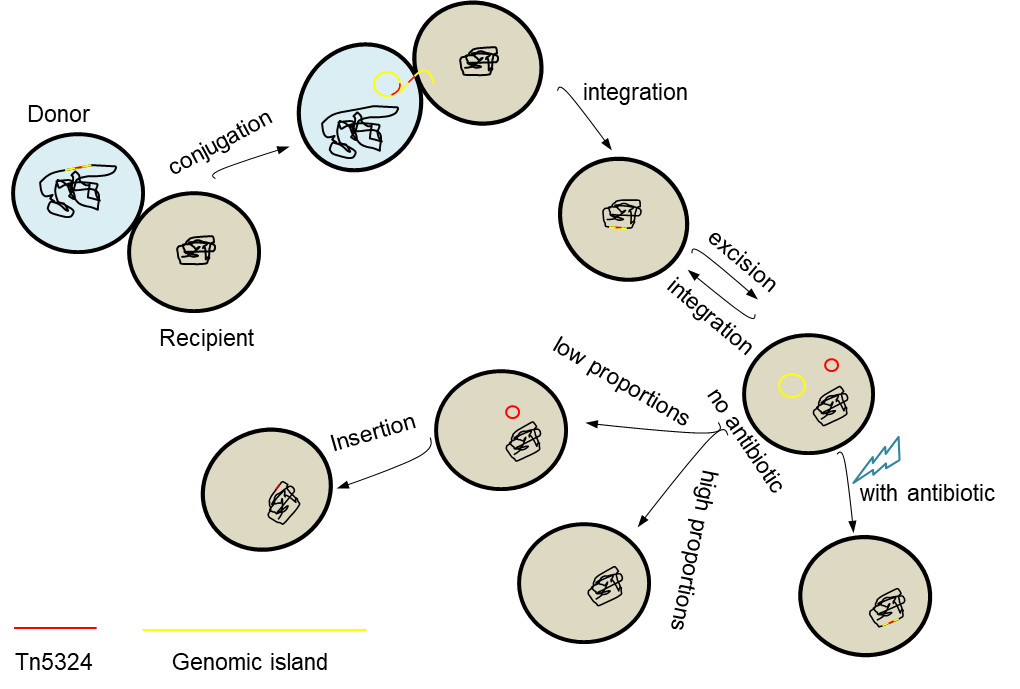 1 双歧杆菌基因组岛介导的抗生素耐药性erm(X)传播的模拟图