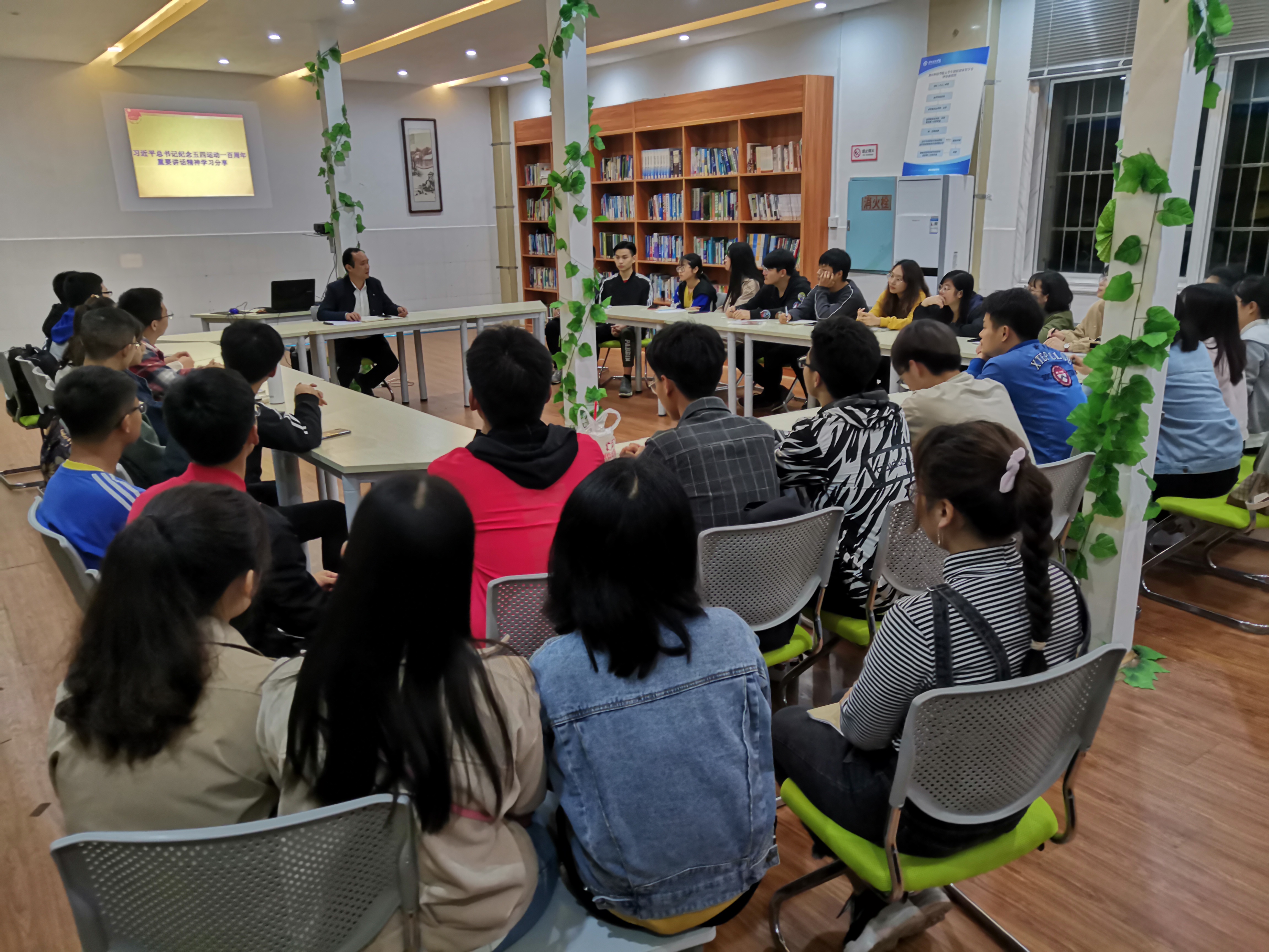党总支书记曾二青就深入学习习近平五四运动一百周年讲话精神与团学干部展开面对面深入交流