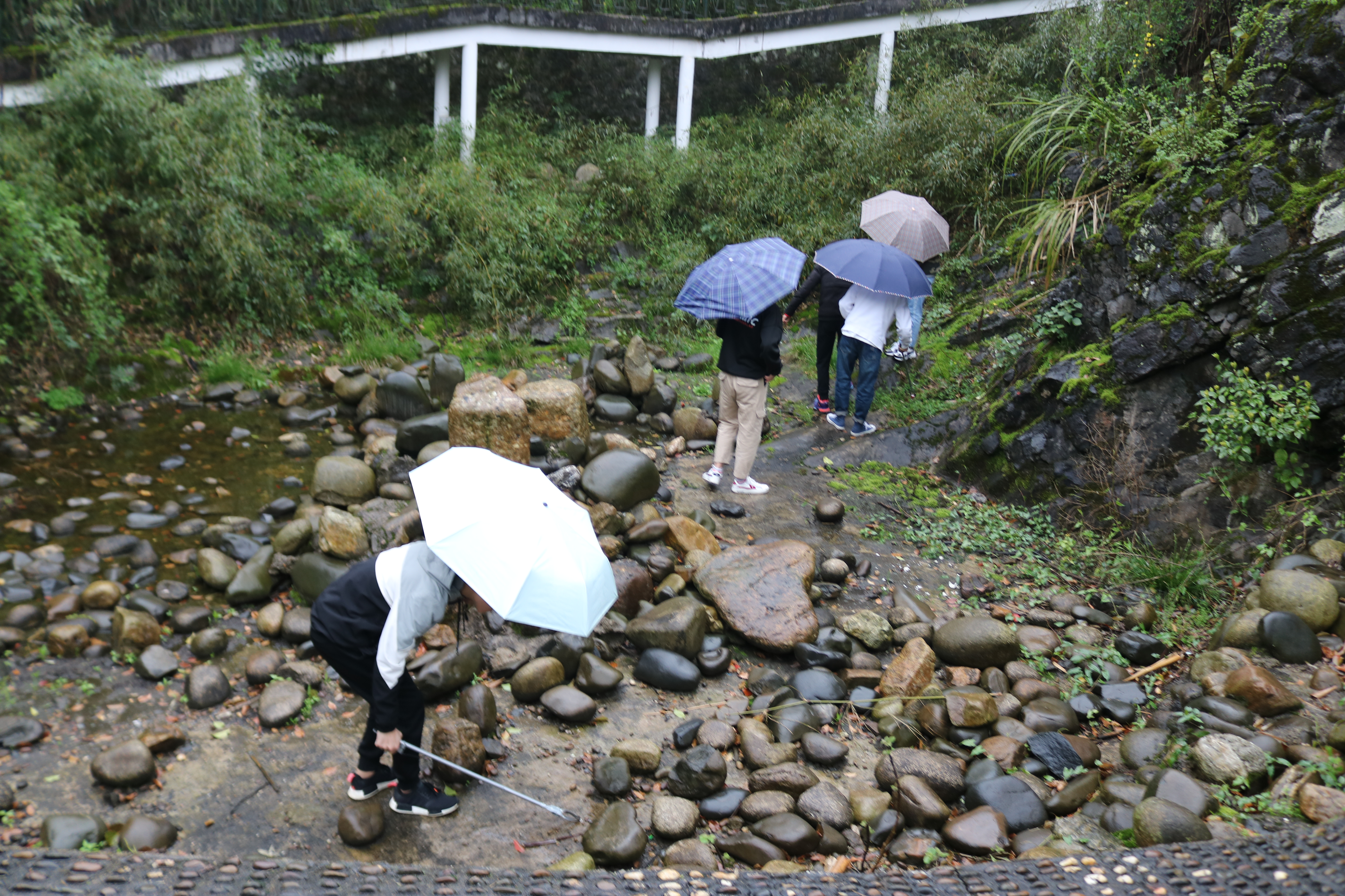 学生冒雨“进军朝阳岩”,还公园一片绿