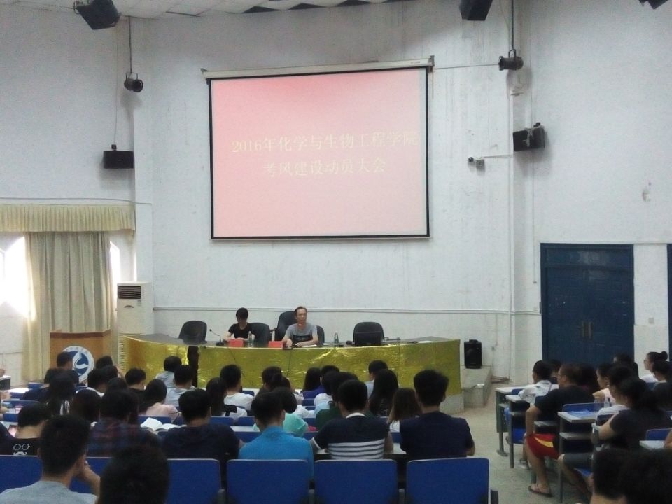 本网讯(通讯员 夏慧聪)6月14日上午,化学与生物工程学院在日新楼212召开2016年上期考试动员大会,组织全院学生集中学习《安博官网app考试违规处理办法》,强化学生诚信考试意识。