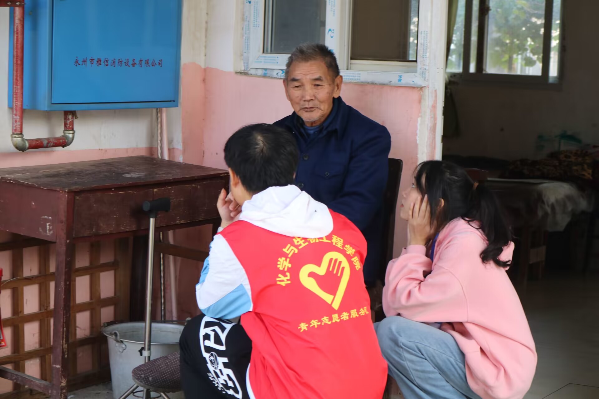 活动当日,志愿者们统一着装,由志愿团负责人带领前往康泰敬老院。志愿者们为老人送上自己挑选的水果,同敬老院的老人们同坐一起聊家常。活动中,志愿者们了解了老人们的生活日常,认真倾听老人们讲述了自己年轻时的故事,志愿者们也积极与老人们分享了读书经历与家乡情况。轻松温暖的对话让重阳节日的氛围在此刻包围,志愿者的关心与陪伴让老人们喜笑颜开、倍感幸福!活动最后,志愿者们与老人们合影留念,记录这美好的一刻。