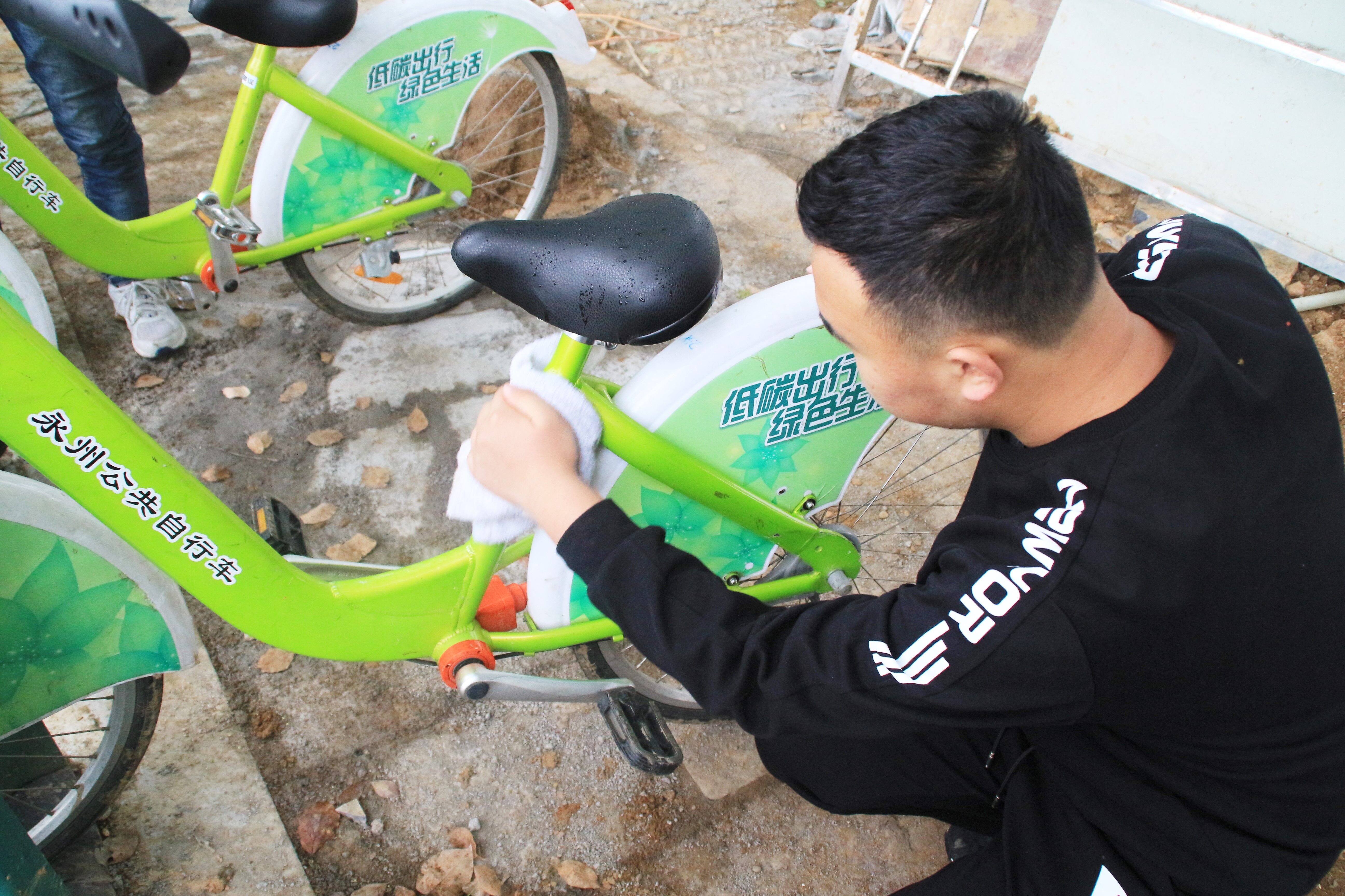 志愿擦车行,为共享单车“擦把脸”