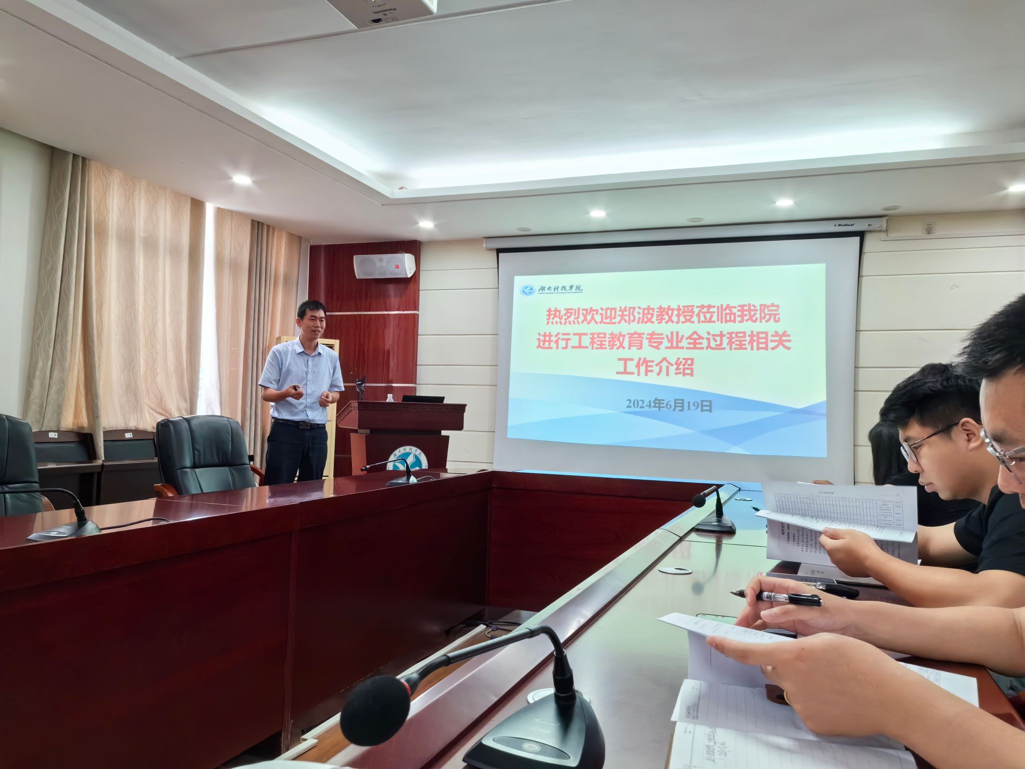 (本网讯 刘乐)为了更好地推进我院工程教育专业认证工作,提高工程教育专业人才培养质量,6月19日下午,学院邀请南华大学教授、博士生导师、南华大学核科学技术学院党委副书记、院长郑波来我院做题为“工程教育专业全过程相关工作介绍”的主题报告,学院专任教师参加会议,报告由学院院长覃佐东主持。