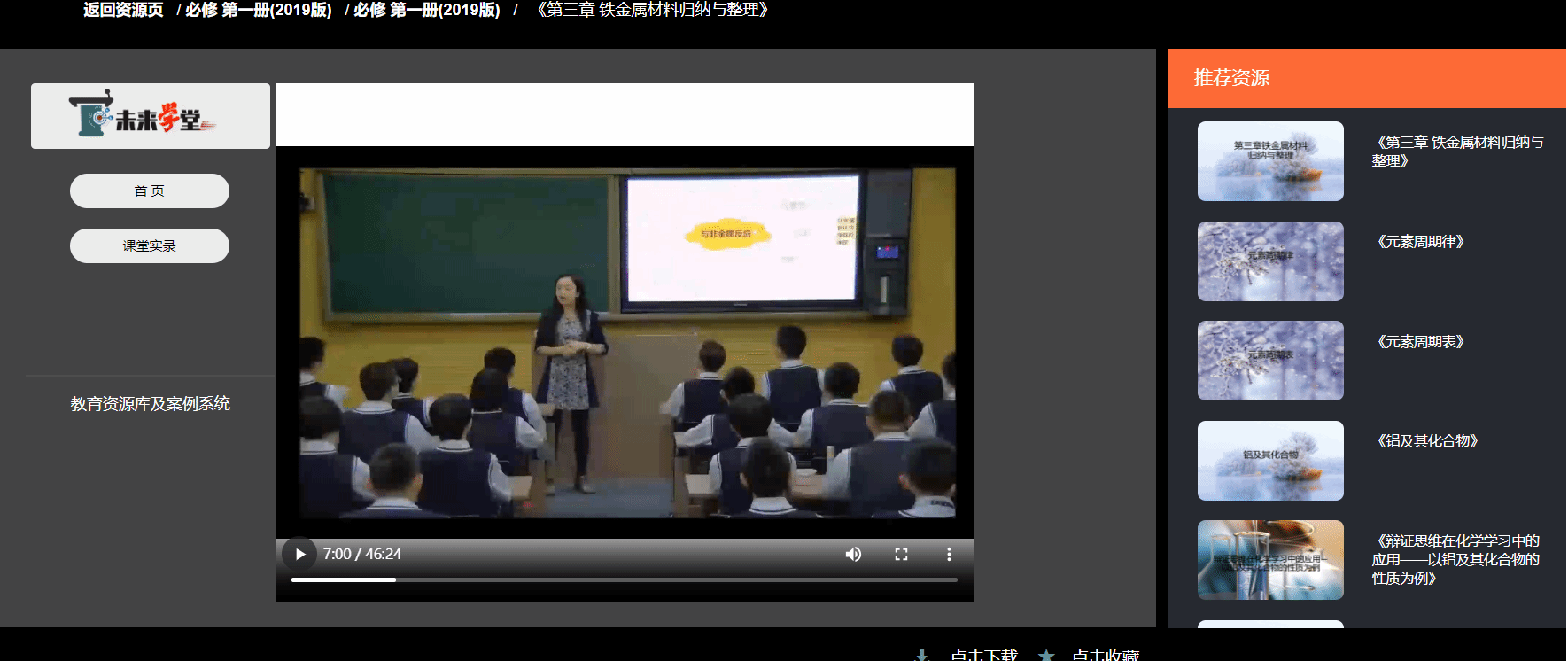 ▶第四步、观看课堂实录、下载相关资源 选择具体课程,选择要学习的对应课时,即可观看免费视频课程教学。