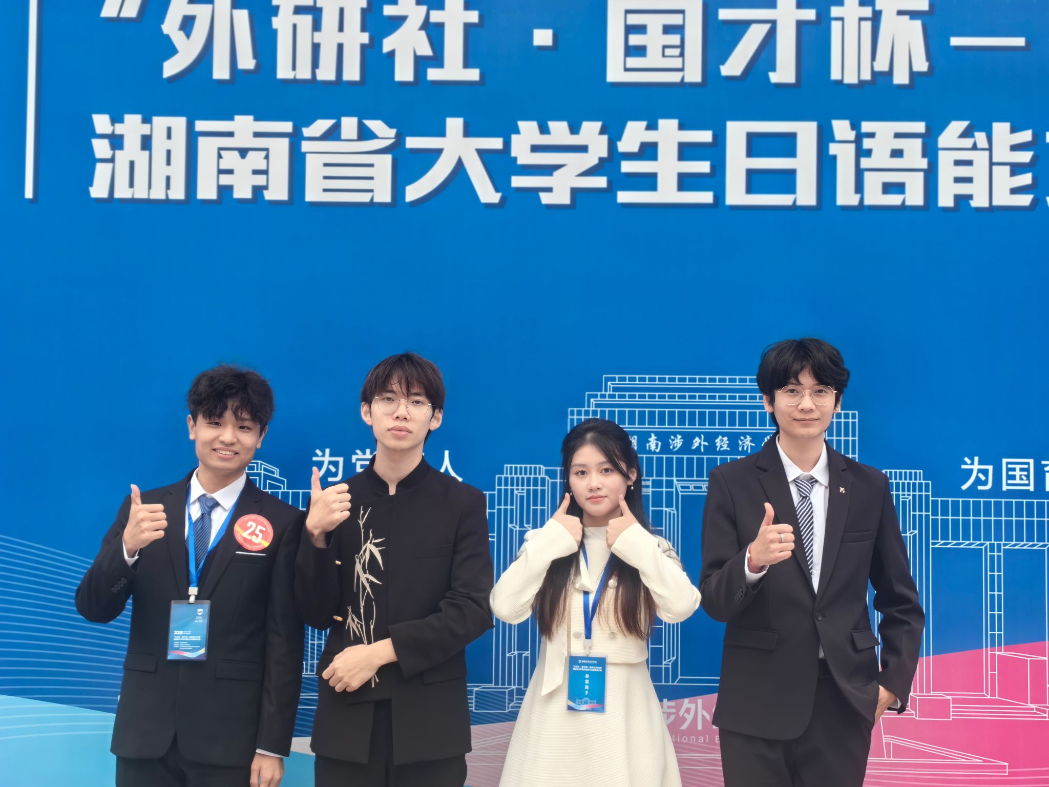 在10月25-26日举行的日语能力大赛中,全省18所高校的72名研究生与本科生同台竞技,赛事成绩由线上综合测试与线下演讲比赛加权评定。我校日语系学子延续优异表现,邓新宇、刘羽茜同学荣获省级一等奖并晋级全国总决赛,唐博、李韬同学分别荣获二、三等奖,其中邓新宇同学以本科生组第一名的综合成绩脱颖而出。同时,学校代表队荣获湖南省团体一等奖。这是继2024年于璟同学斩获省级一等奖并勇夺国赛金奖后,日语系学子再次取得的好成绩,展现了专业高质量发展的良好态势。