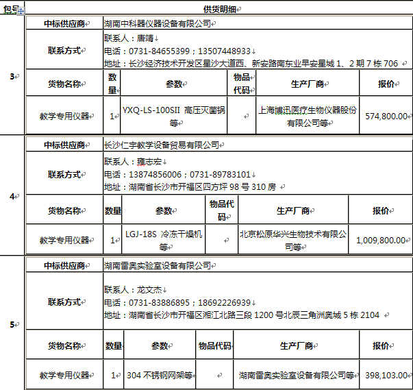 受安博官网app的委托,湖南博进招标代理有限公司代理机构对 2017年中央财政支持地方高校共建项目第二批采购项目进行公开招标,经评标委员会评审,采购人确认,现将中标信息公告如下: