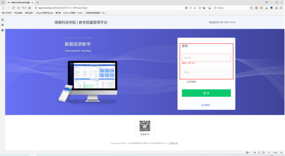 1.在浏览器中打开安博官网app教学质量管理平台(网址为:https://jxpj.huse.edu.cn/)