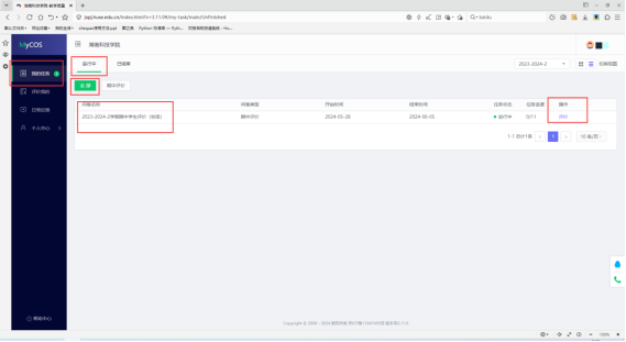 4.点击我的任务,选择进行中,选择2024-2025-2学期期中学生评价(校级),点击评价后即可开始;