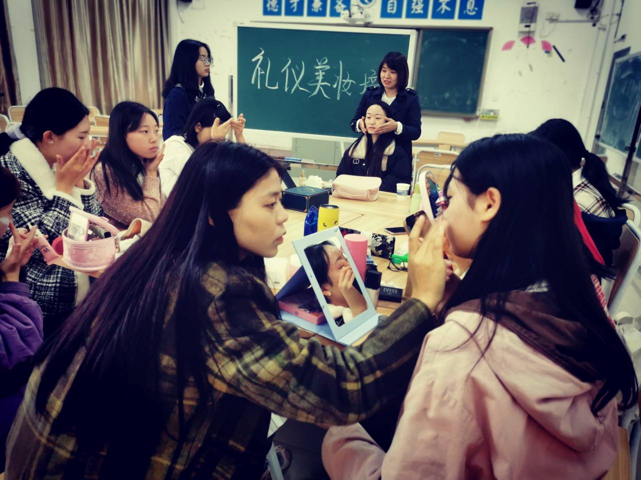 本网讯(通讯员阳铁雨肖雪)礼仪队是学院的一张美丽名片,为了提升礼仪队的外在形象,促进礼仪队成员之间的交流,11月22日上午,我院于明理楼411研讨式教室开展了礼仪队美妆培训的第一课,出席本次培训的有18级辅导员谢美、美妆顾问肖芬以及19级、20级全体礼仪队成员。