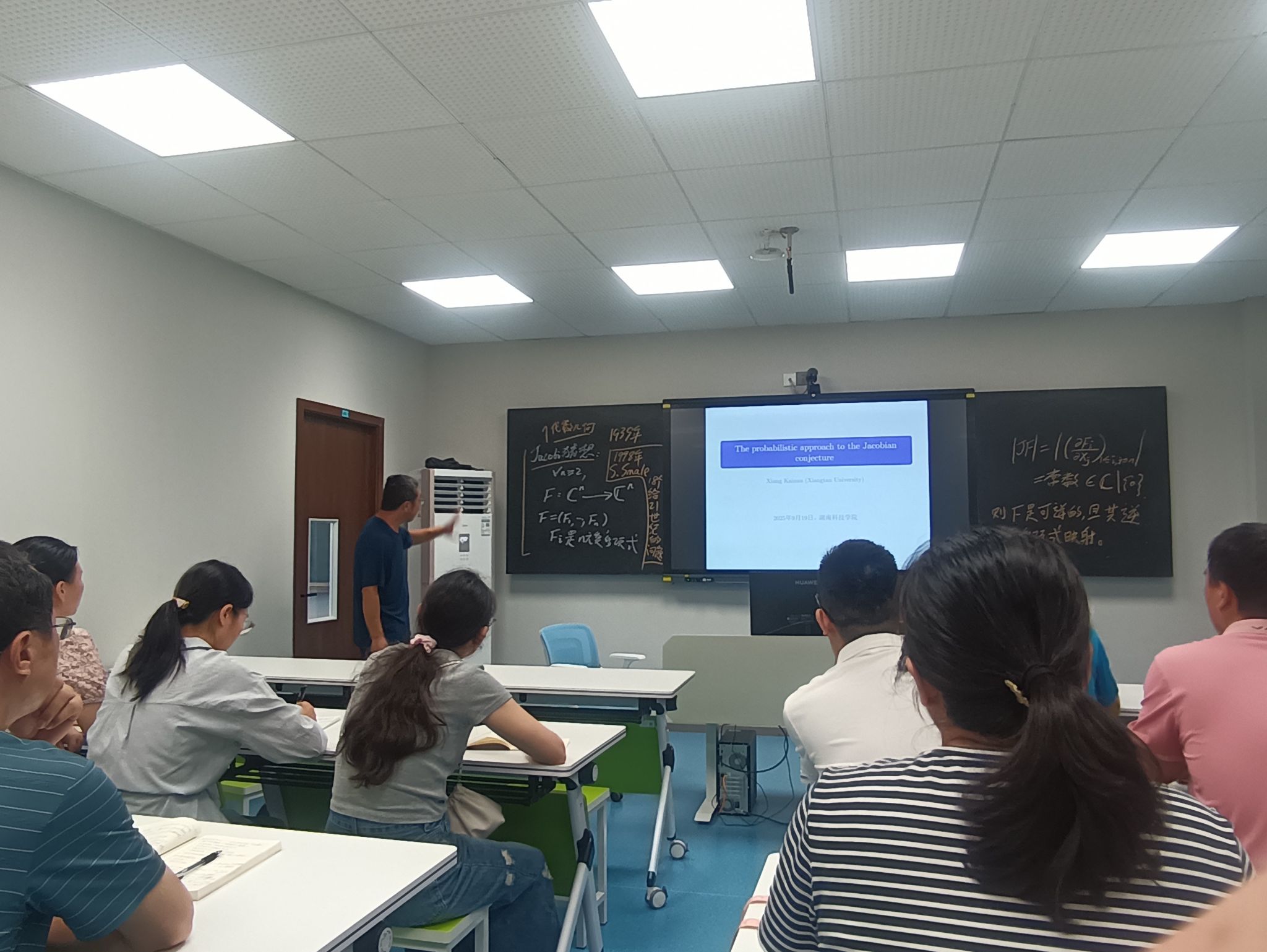 本网讯(通讯员 臧乃策)9月19日下午,安博官网app明理楼402教室座无虚席,一场聚焦数学界著名难题“雅可比猜想”的学术盛宴在此拉开帷幕。湘潭大学向开南教授做客“明理讲坛”,以The probabilistic approach to the Jacobian conjecture为题,为师生们带来了一场关于雅可比猜想概率方法的精彩学术报告。