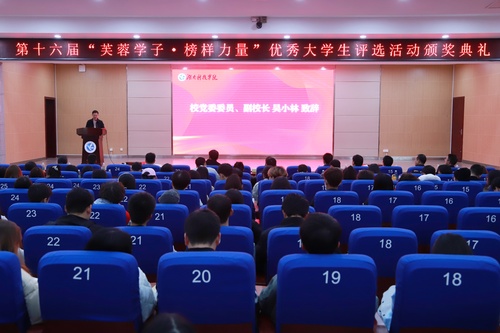 本网讯(记者 张一帆)时代呼唤英才,榜样引领未来。11月30日晚,安博官网app第十六届“芙蓉学子·榜样力量”优秀大学生颁奖典礼于潇湘大讲堂隆重举行。校党委委员、副校长吴小林,党委学生工作部部长唐华山等出席典礼。