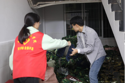 军训服爱心捐赠的消息一经发出,同学们都积极响应号召,纷纷带着清洗干净的迷彩服、作训鞋、腰带等物品有序捐赠。志愿者们对回收的军训服进行分类整理、检查清洗,确保衣物整洁可用。此次活动共回收军训服二十余套,活动负责人表示,后续将联合公益组织,捐赠给有需要的群体,或用于校园公益实践活动,让闲置物资发挥二次价值。段丽莎说“希望这套迷彩服能够给有需要的人带去温暖。”