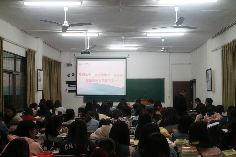 本网讯(通讯员李艳全伟贺茶湘)4月13日晚,中南大学博士生导师、博士后导师刘新庚教授在鹤鸣楼501教室为该院师生做了题为《思想政治教育理论与方法前沿》的学术讲座。讲座由马克思主义学院院长廖雅琴主持,马院全体学生参加。