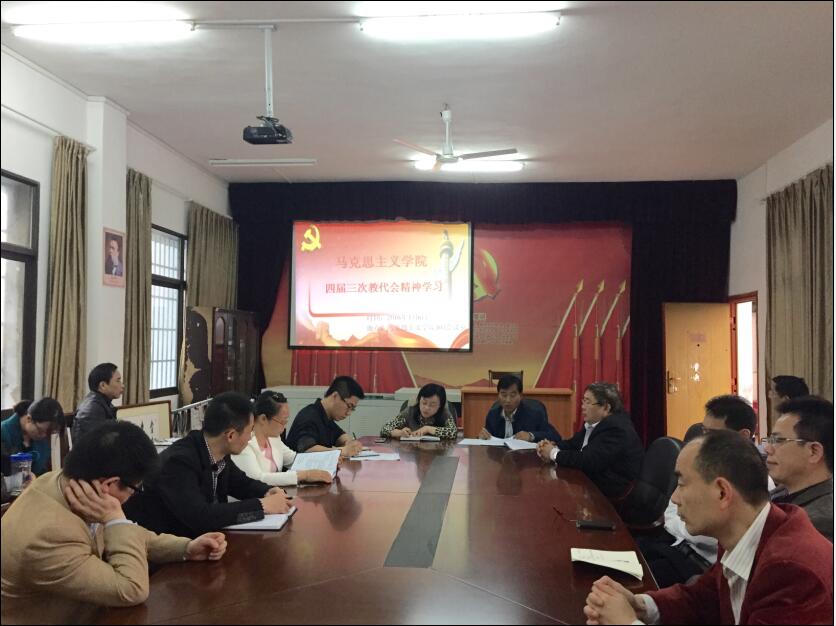 本网讯 马克思主义学院于2016年4月6日上午该院会议室405学习和讨论了校长曾宝成作的题为《聚焦目标任务,狠抓工作落实,为建设高水平应用型大学打下坚实基础》的工作报告和《安博官网app“十三五”事业改革与发展规划》。
