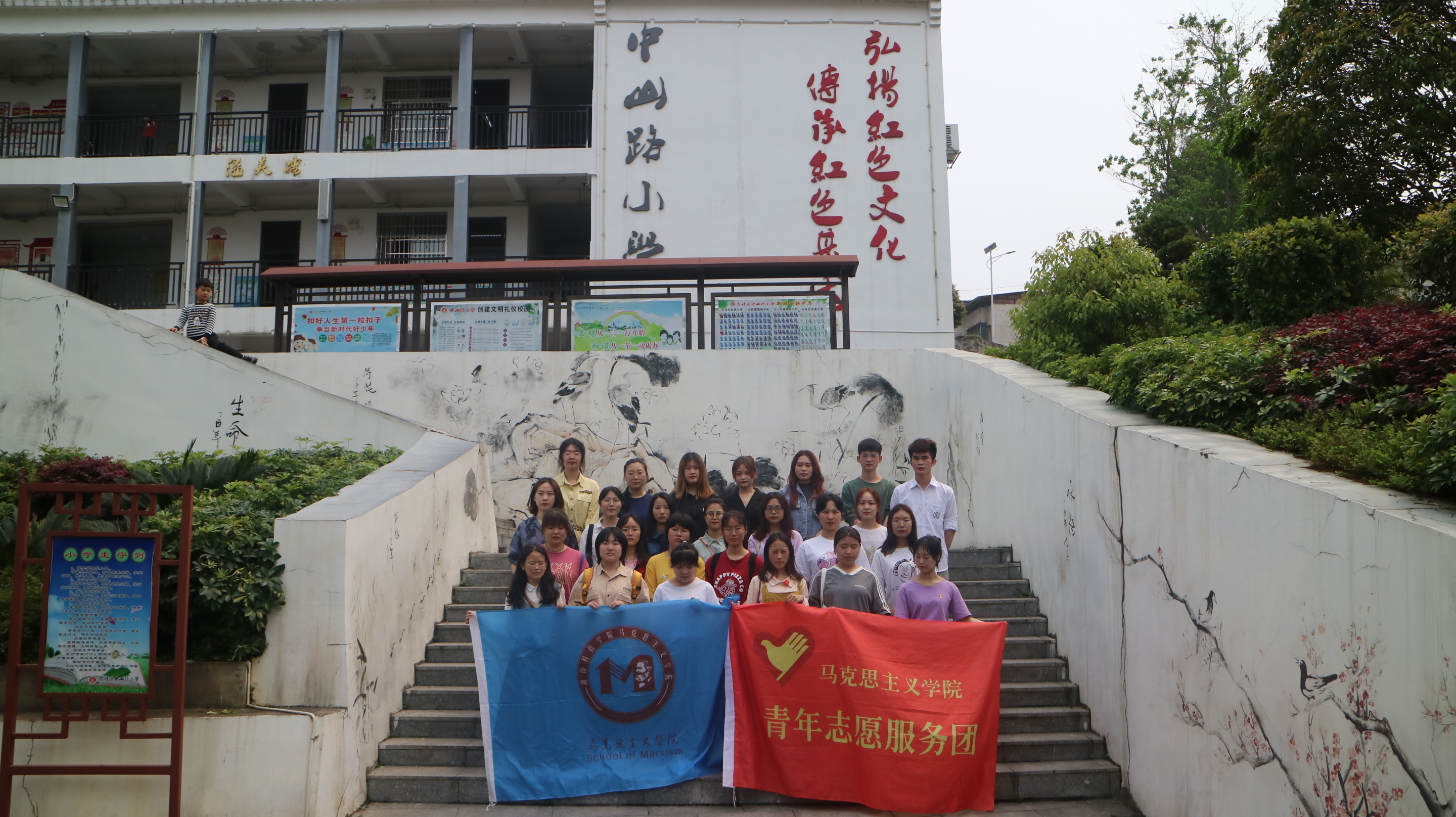3月31日,经过认真筹备,义教活动迎来第一课,我院26名志愿者去到中山路小学一二年级各个班级,以故事的形式向学生讲述党史知识。