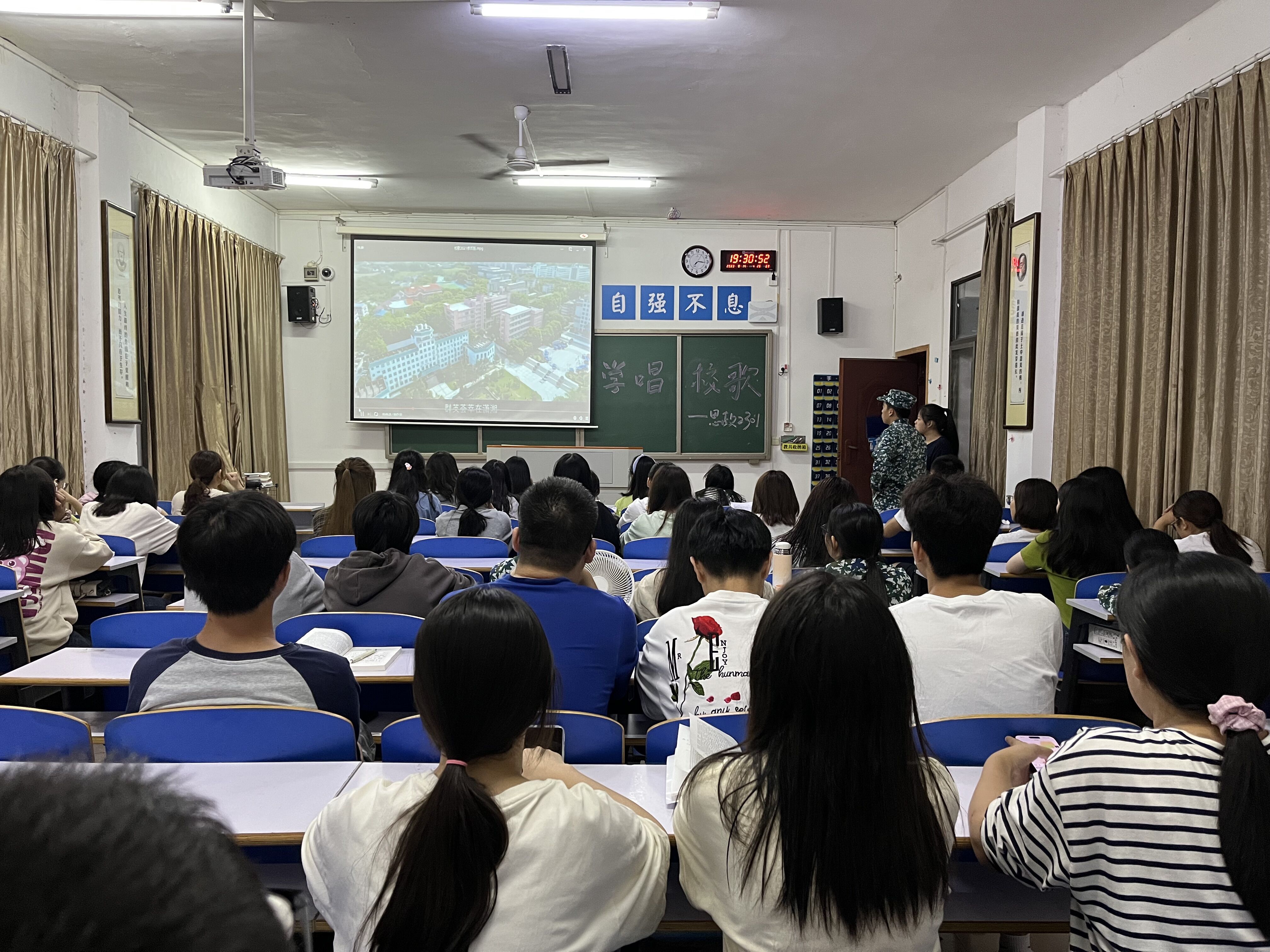 最后,同学们学唱了校歌《潇湘之歌》。
