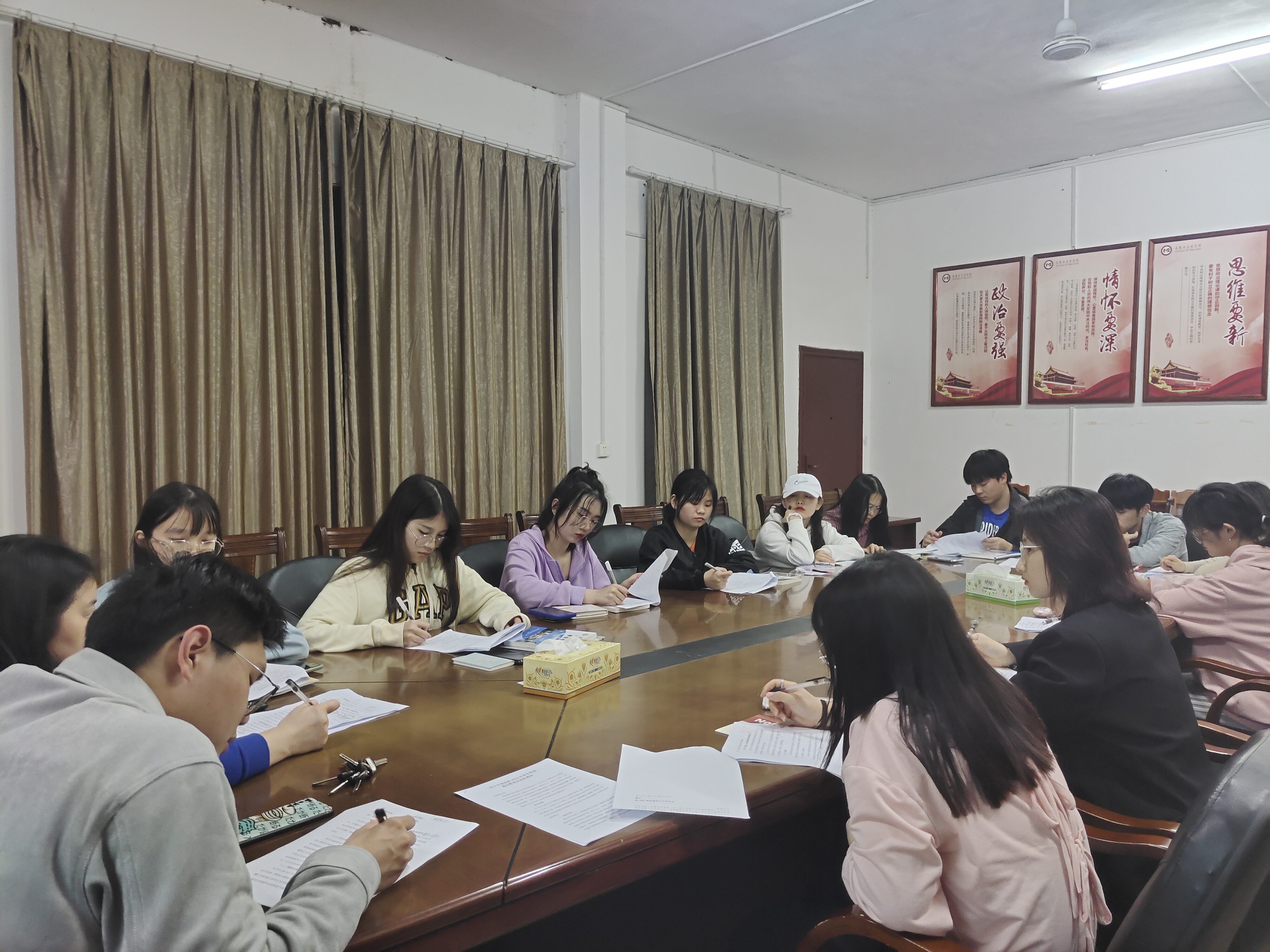 根据教育部学生资助管理中心、湖南省学生资助管理中心以及我校2022年学生资助诚信教育活动的工作要求和安排,培养学生知恩感恩,诚实守信的优良品质,进一步加强咨助政策宣传,充分发挥资助育人功能,2022年5月11日晚,马克思主义学院于鹤鸣楼405召开诚信教育系列活动安排布置。学生辅导员胡非,团学联办公室资助部,各班副班长参加会议。