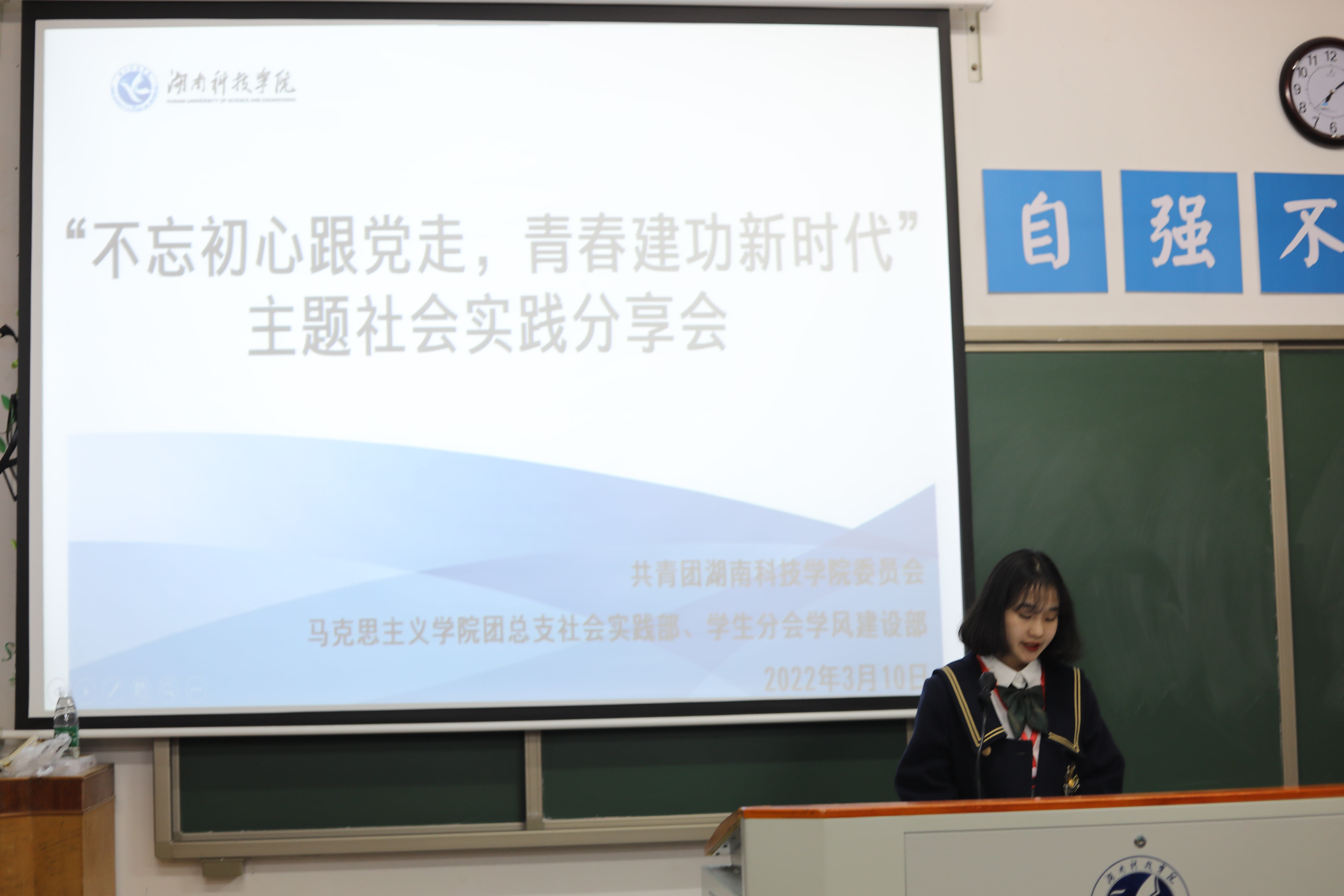 会上,思政2002班张娟秀、思政2102班李钰晨等五名同学分享了各自的社会实践,她们通过PPT讲述了自己在寒假期间的实践故事,向同学们展示了自己的社会实践心得以及实践成果。