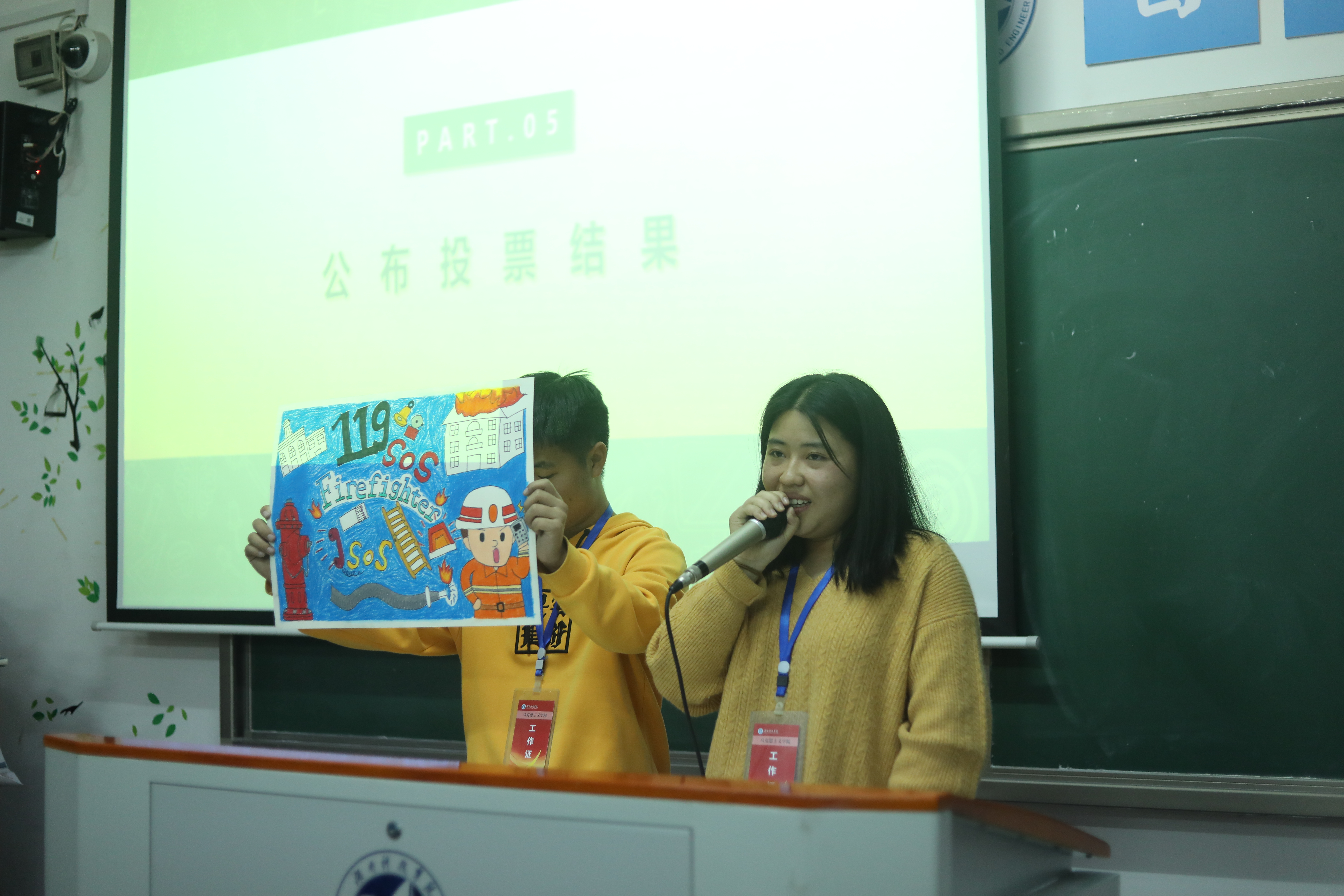 参赛海报作品兼备创意和美感,同学们在台上自信大方,活动播放了关于寝室安全的视频,并设置了抢答环节,同学们踊跃参加,气氛热烈。