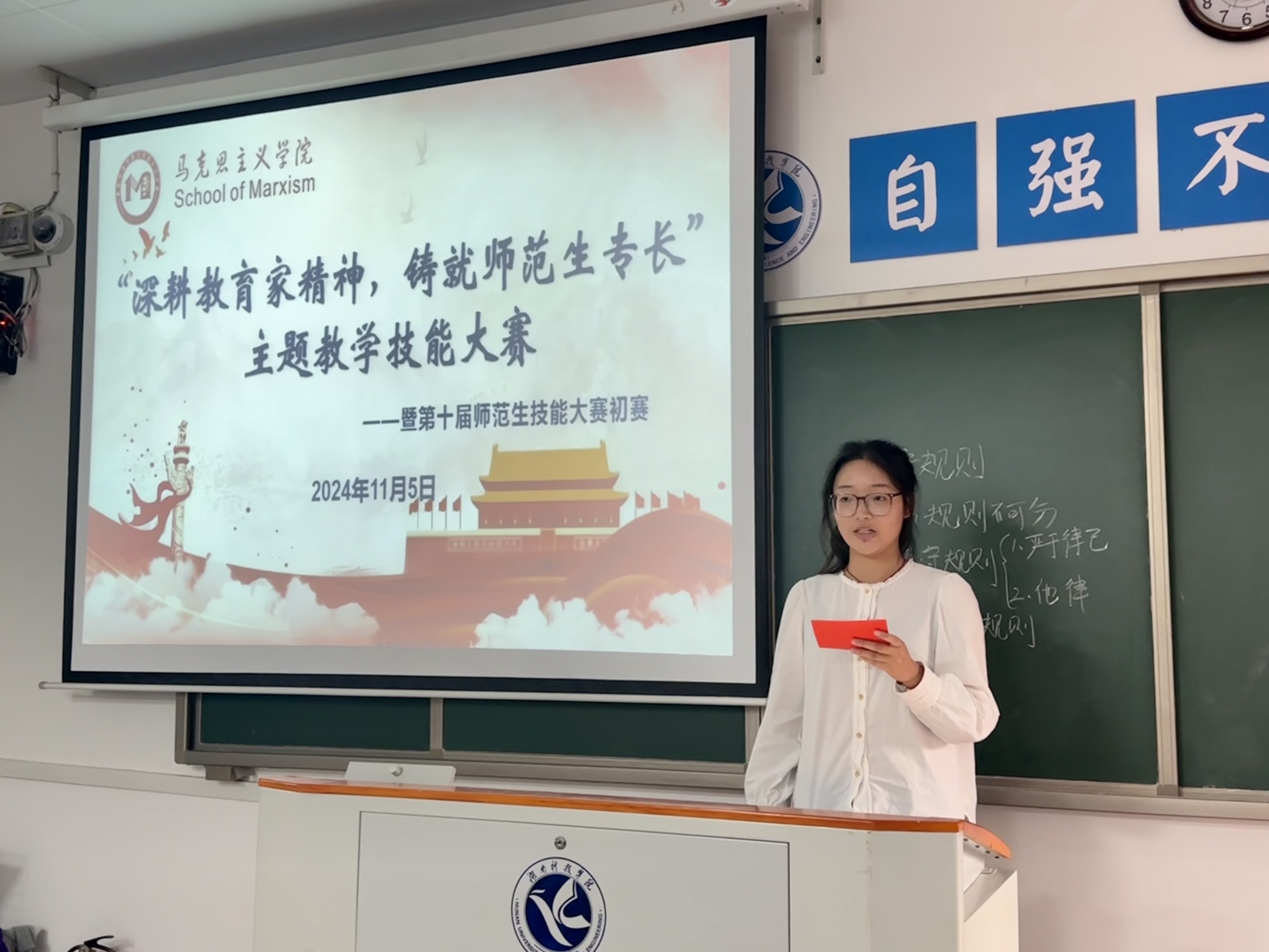 本网讯(记者 李嘉瑶 吴美林)为进一步提升思想政治教育专业学生的教育教学技能。11月5日下午,我院于鹤鸣楼406、407教室举办“深耕教育家精神,铸就师范生专长”主题教学技能大赛。