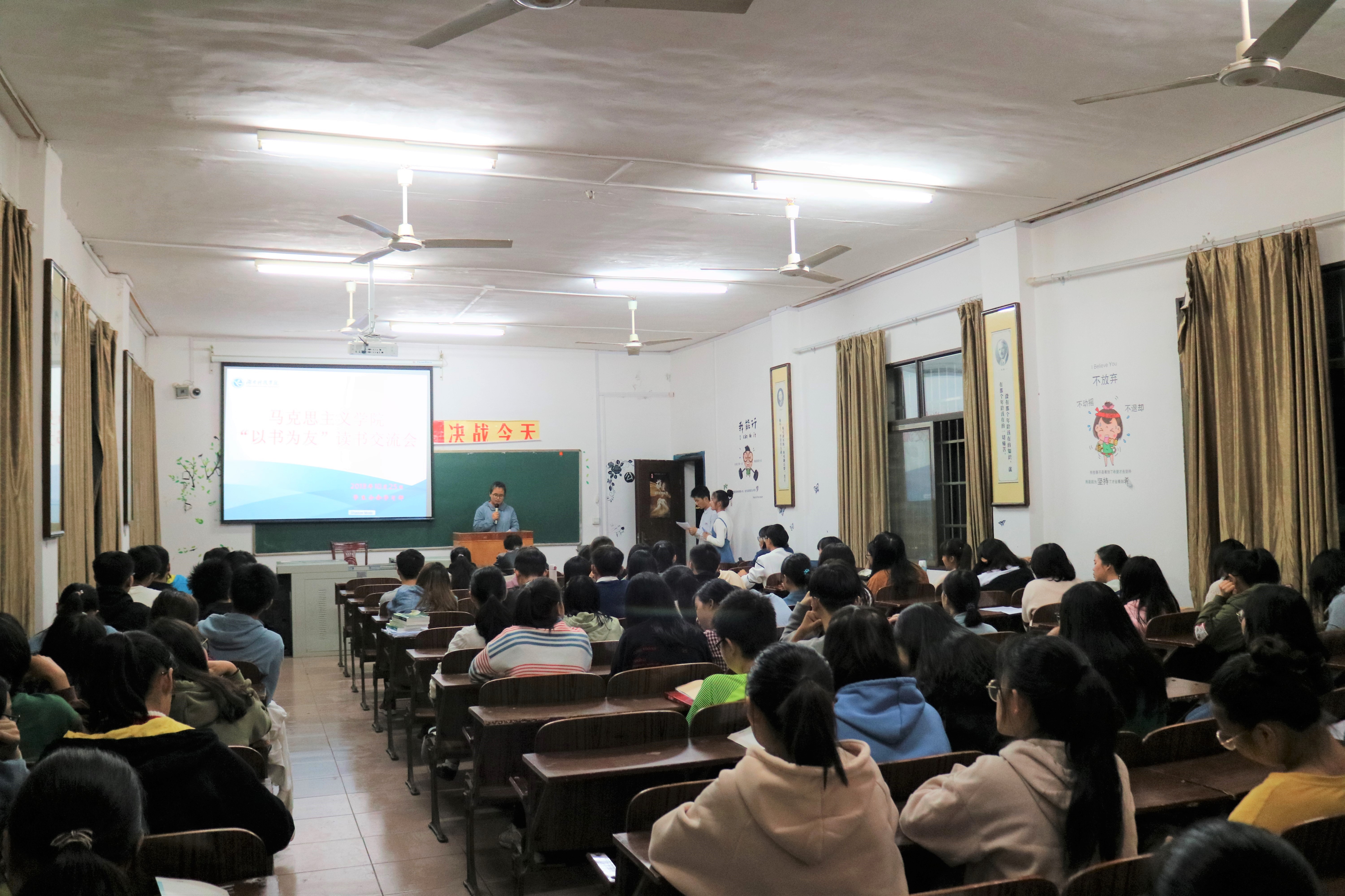 本网讯(通讯员 尹玉婷 黎雪平)为培养学生的课外阅读能力,提高其思维活跃度及综合素质。10月25日晚,马克思主义学院在鹤鸣楼举办“以书会友”读书交流会。18级全体学生参与。