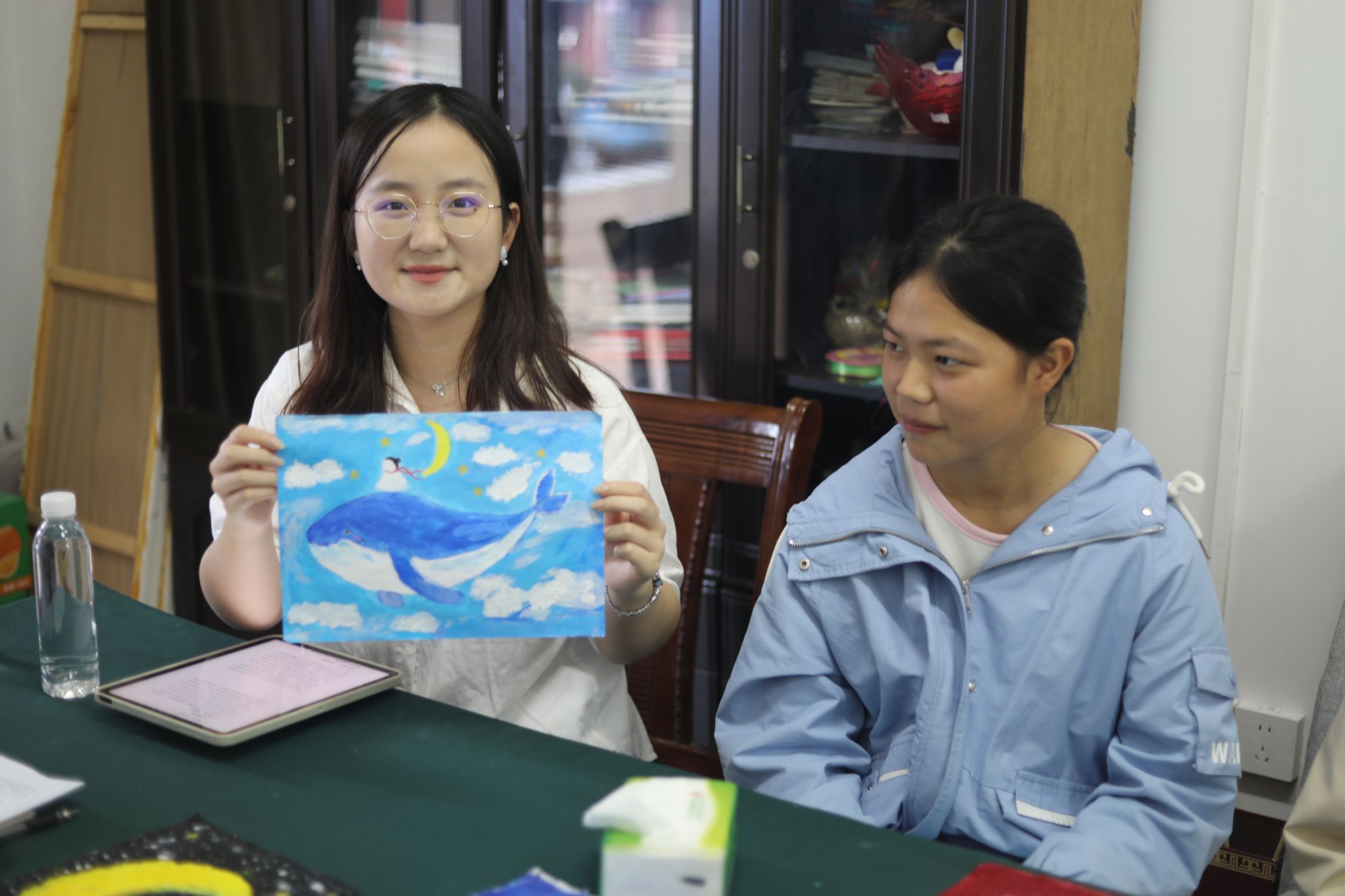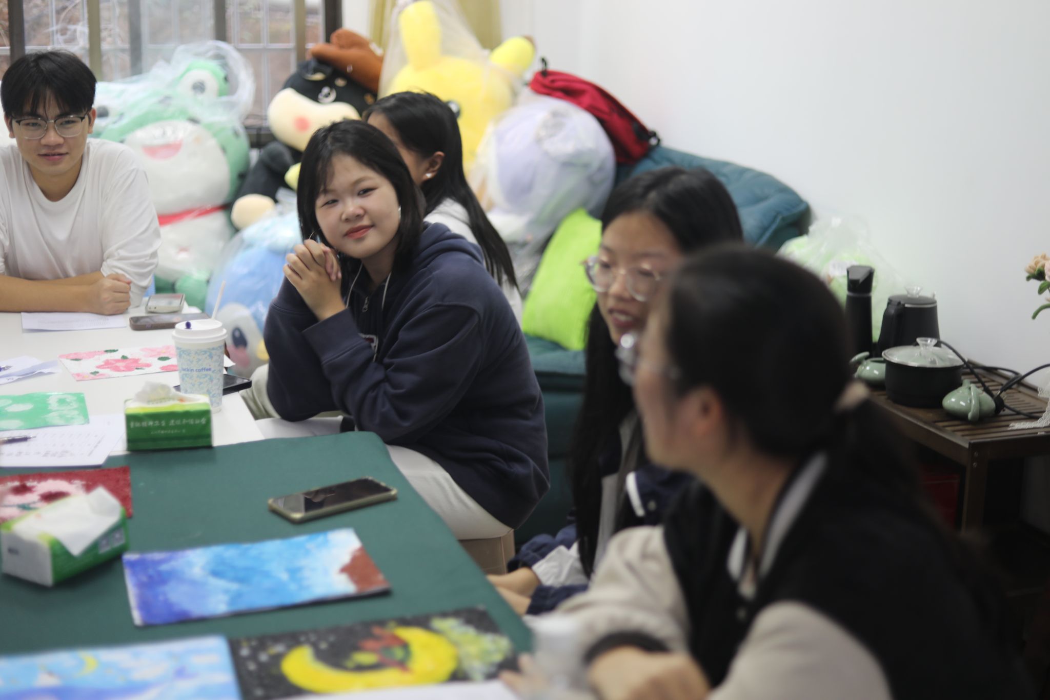 会上,主讲人唐晶分享了大学如何平衡学习与竞赛,并鼓励大家要勇敢试错;邓晶就如何处理人际关系、克服生活中的内耗进行了经验分享;随后,其他同学讲解绘画思路,这些画作饱含对美好生活的憧憬,有的表达了内心深处的情感,有的呈现出独特的认知,展现出丰富的想象力和创造力。