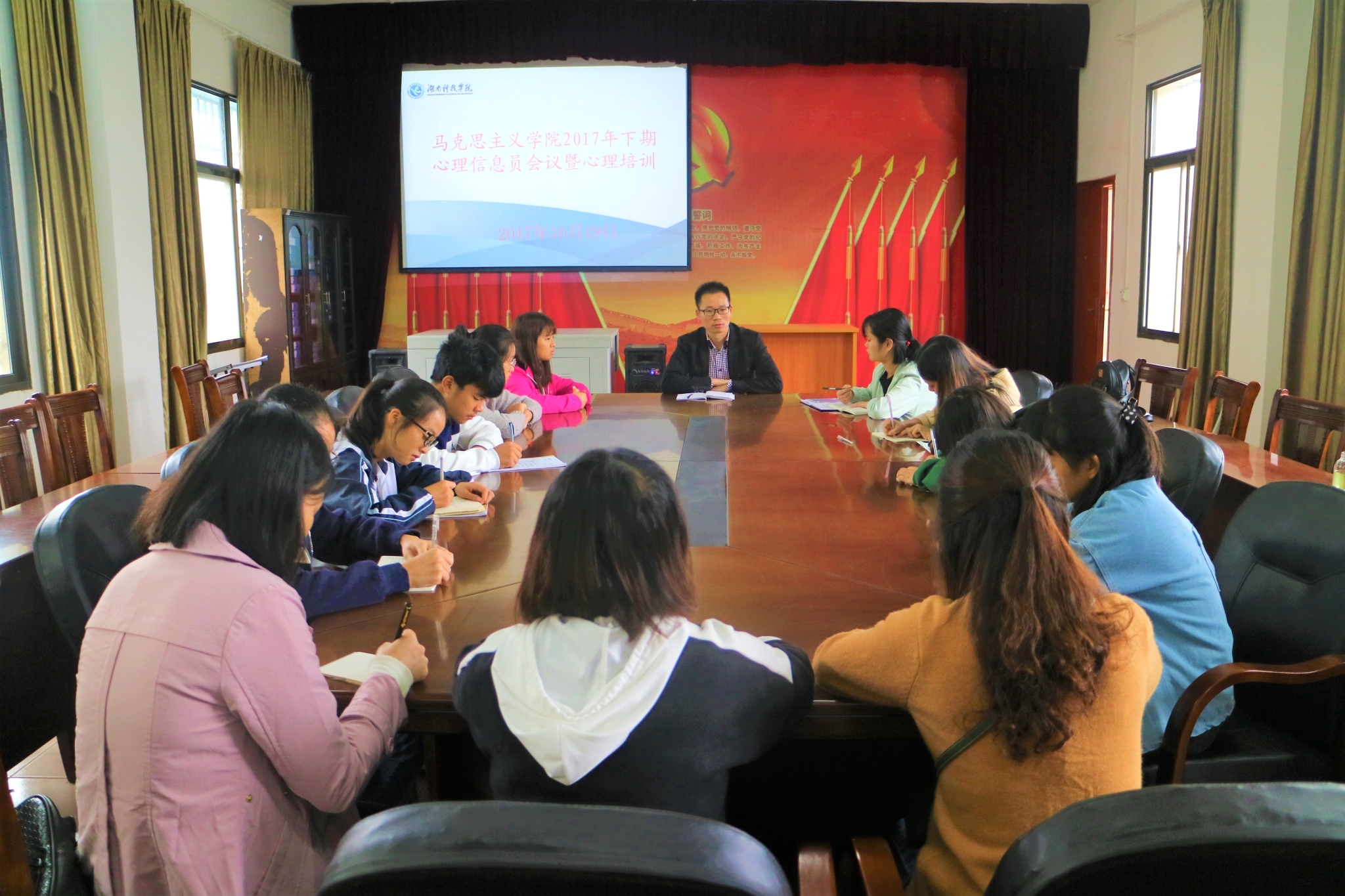 本网讯(记者张亚娟 彭超)为切实加强学生的心理素质教育,传递积极、健康的学习、生活理念。马克思主义学院于10月19日上午在405教室举行了2017年下学期心理信息员会议暨心理知识培训。