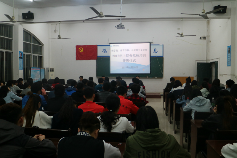 本网讯(全伟 张金灵) 4月10日晚,由马克思主义学院、体育学院、理学院分党校联合主办的入党积极分子培训班开班典礼在明理楼101教室举行。三个学院共102名学员参加此次分党校培训。