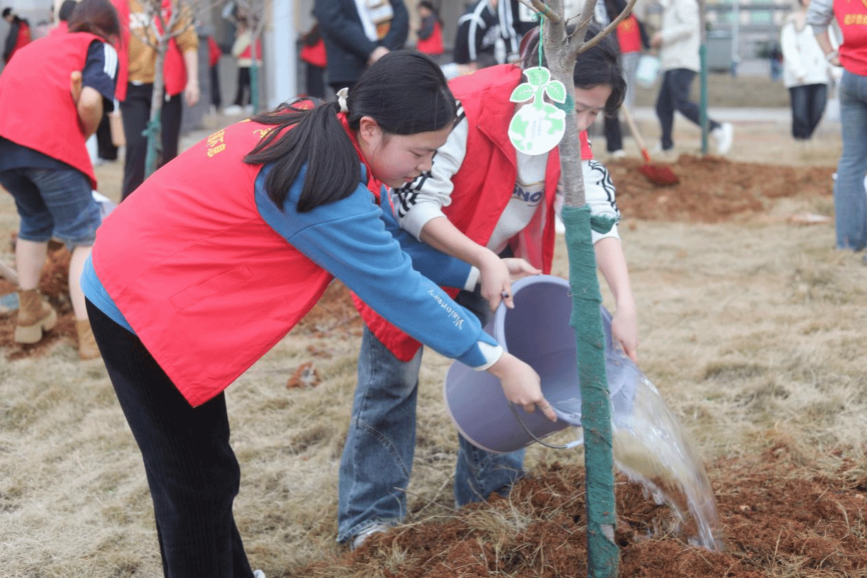 本网讯(记者 易淑妍)为强化同学们的环保意识,激发投身环保行动的热情,3月11日下午,安博官网app于小田径场旁举办了植树节劳动实践活动,马克思主义学院党总支书记陈玉皎、党总支副书记高丹、学生党支部书记曹惠如等带领党员、青年志愿者共同为校园添绿。