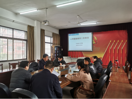 本网讯(通讯员 王君)3月24日上午,校学生工作部副部长胡敏辉、校大学生心理健康教育中心主任涂巍来到我院进行心理健康教育工作督导。马克思主义学院党总支副书记兼副院长高丹以及各年级辅导员、班主任参加本次督导,会议由高丹主持。