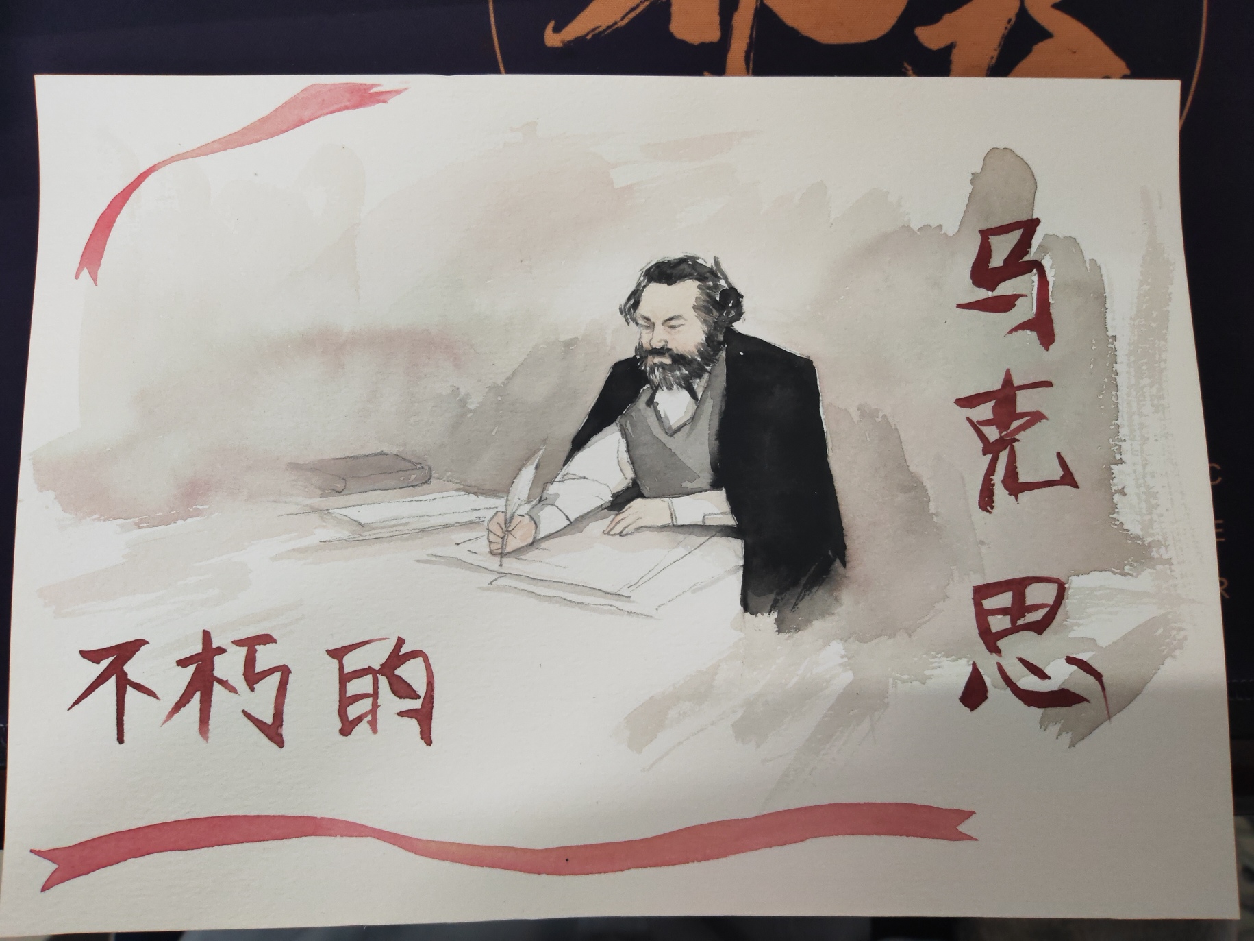 在团课的结尾,唐老师让同学们以“不朽马克思”为主题来创作一幅作品,通过同学们的精心设计和绘画,加深了同学们对马克思主义的精神领悟。