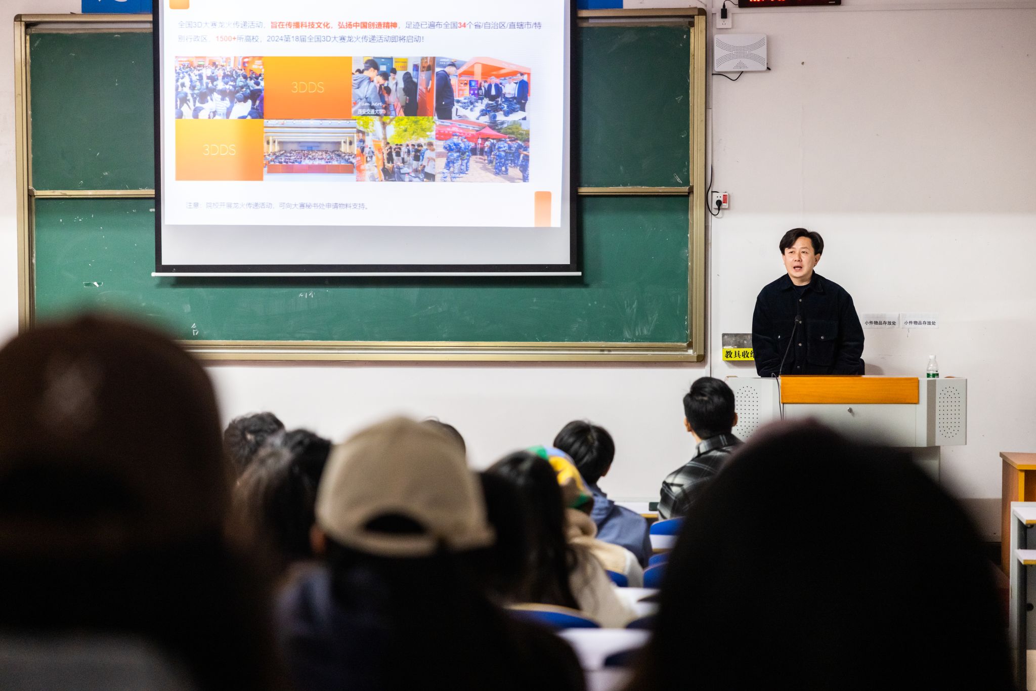随后,长沙理工大学设计艺术学院副院长王龙老师就相关学科竞赛的组织与实施向全院师生进行了宣讲。他详细介绍了该校在各类学科竞赛中取得的优异成绩和宝贵经验,包括竞赛的选题、组队、备赛、参赛等各个环节的注意事项和技巧。同时,鼓励我院师生积极参与学科竞赛,通过竞赛锻炼能力、拓展视野、提升水平。