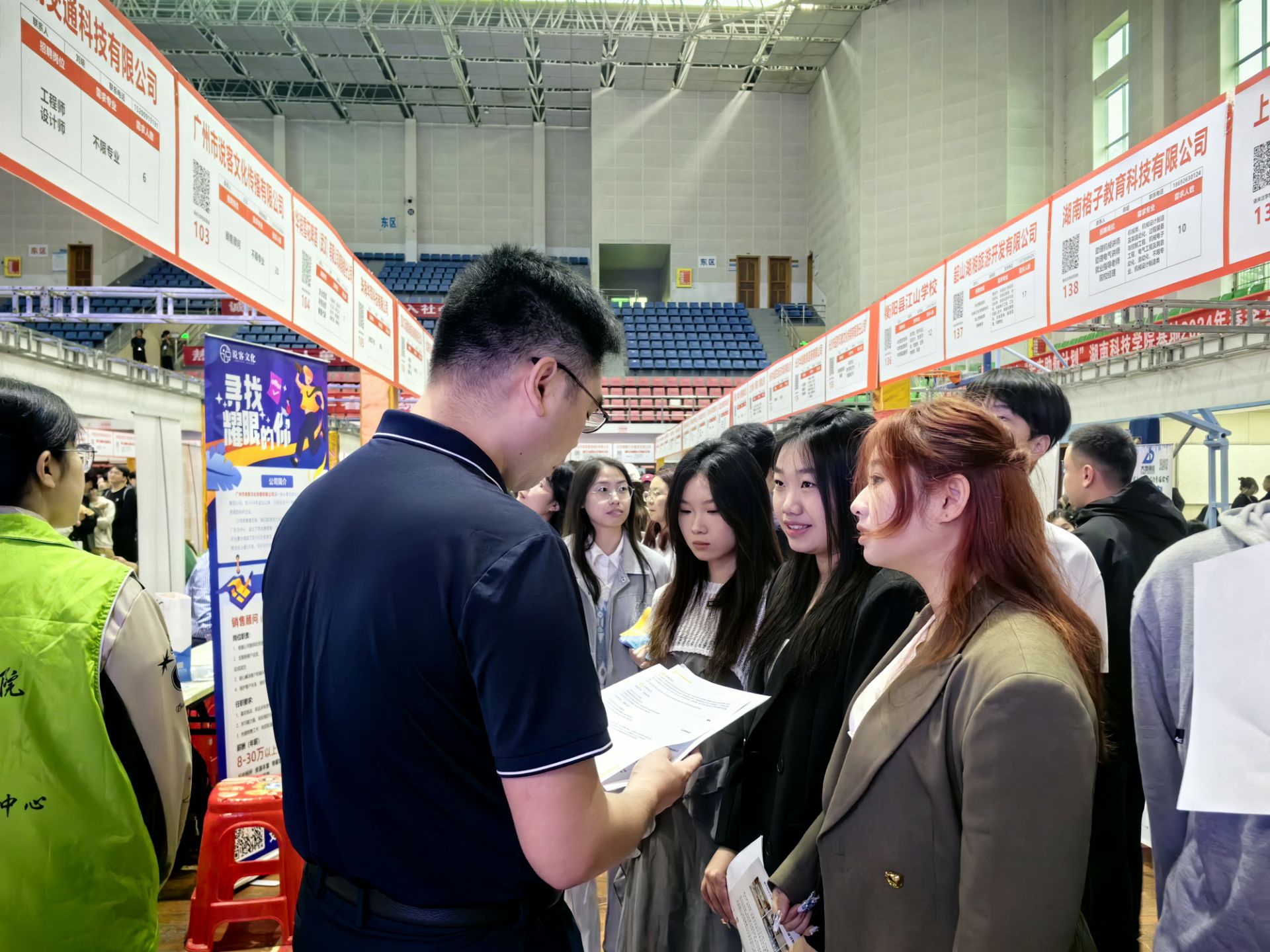 本网讯 2024年4月18日上午9点,安博官网app在体育馆成功举行2024年春季综合类双选会。为更好地帮助毕业生寻求就业岗位,美术与艺术设计学院院长张建利、党总支书记王博、党总支副书记胡敏辉、毕业班辅导员李国碧、大三辅导员黄胜老师一齐参与招聘会现场对毕业生们进行暖心指导与服务。