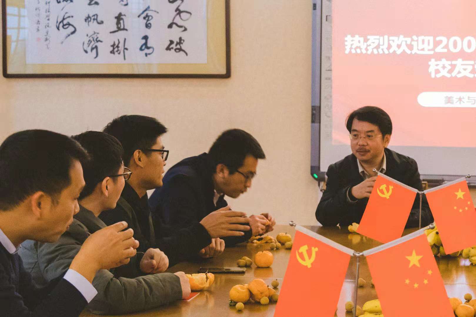 11月17日,美术与艺术设计学院08届艺术设计五班校友回校,美术与艺术设计学院院长张建利、副书记刘华、学工办主任欧阳智超接待了各位校友,并在学院会议室举办了座谈会,环艺专业学生参与了此次座谈。