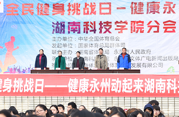 我校副校长李常健、程智开,体育学院院长刘根发,市文体广新局副调研员赵红萍,零陵区文体新局党组副书记、副局长欧阳波夫等领导一同与师生们“舞动”起来,共话健康话题。