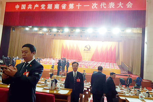本网讯 11月15日至19日,中国共产党湖南省第十一次代表大会隆重召开。大会听取了杜家毫同志《保持初心,继续前进,为建设富饶美丽幸福新湖南而努力奋斗》的工作报告,将选举产生新一届省委和省纪律检查委员会领导班子。本次党代会共有747名代表,永州市共有45名代表,我校党委书记陈弘光荣出席。