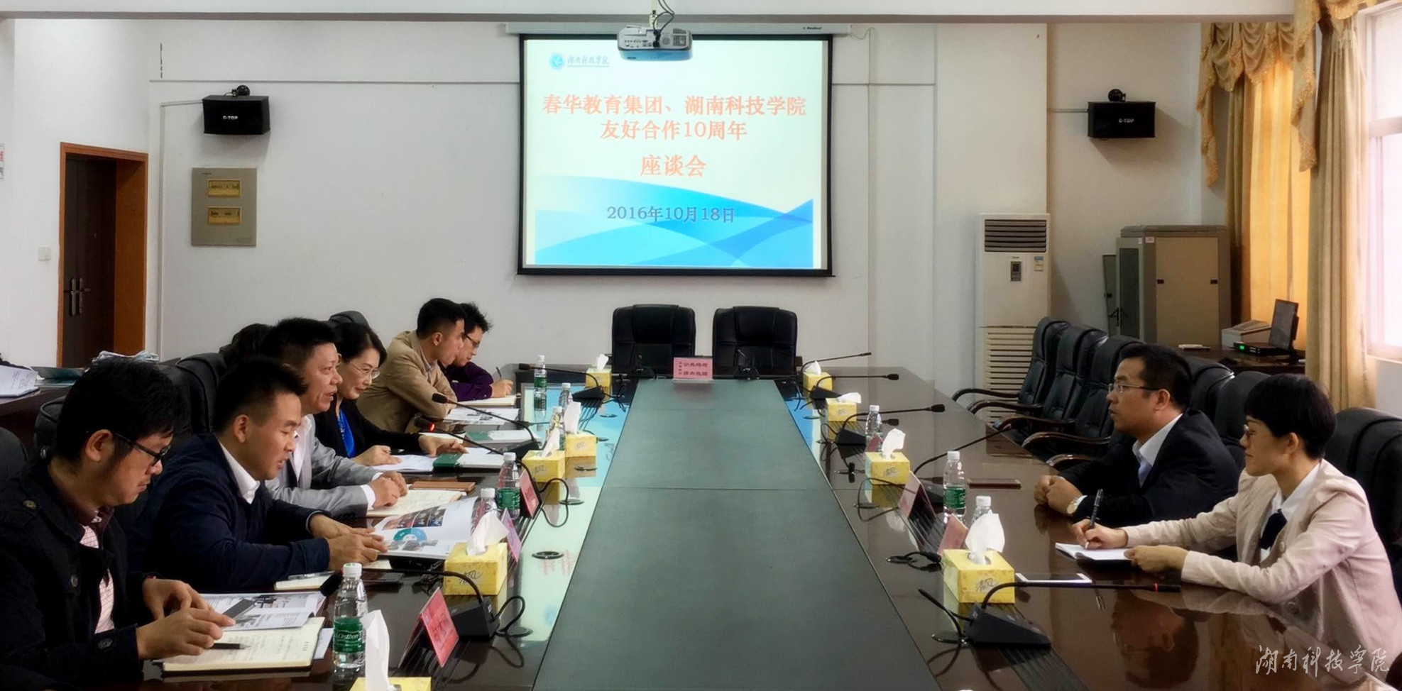 本网讯 10月16至18日,我校邀请春华教育集团总裁涂源贞一行8人来校,举办了共庆友好合作十周年座谈会、校园招聘会、就业辅导讲座等系列活动。
