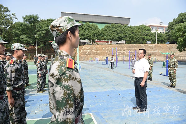 陈弘还特别关心了在场外因身体不适无法参训的同学。现阶段天气较炎热,陈弘叮嘱大家要注意防暑降温,军训间隙多补充水分。一定要在保证自己身体的前提下,顺利完成军训任务。