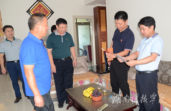 本网讯 8月1日,建军节来临之际,受学校党委、行政委托,党委委员、副校长程智开、李常健走访慰问了周祖盛、乐国运、姚金林、唐艾武、邓瑞龙、李湘军等部分退伍军人,给他们送去学校的关怀与节日的祝福。