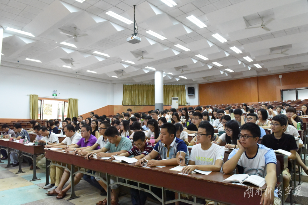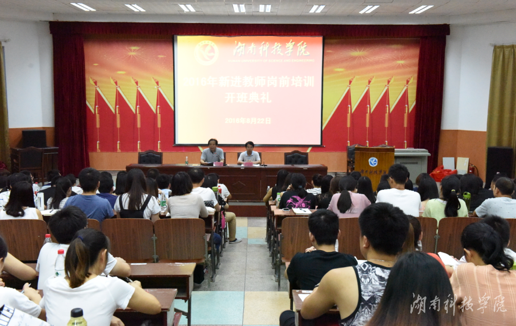 本网讯 8月22日上午,学校在明德楼报告厅举行2016年新进教师岗前培训开班典礼。副校长郑山明出席并讲话,副校长李常健主持开班典礼。来自我校以及永州职业技术学院、九嶷职业技术学院、永州电大的100多名新进教师参加开班典礼。