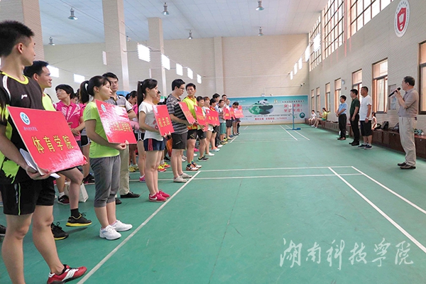本网讯 6月24日至26日,我校教职工羽毛球团体比赛在训练馆火热举行。本次比赛共有14个分工会派队参赛。副校长程智开,副校级督导、工会主席陈仲庚到场观赛。经过三天激烈角逐,体育学院、人文与社会科学学院并列第一,传媒学院、化学与生物工程学院、电子与信息工程学院、美术与艺术设计学院、机关四分工会及理学院分获第二至第七名。