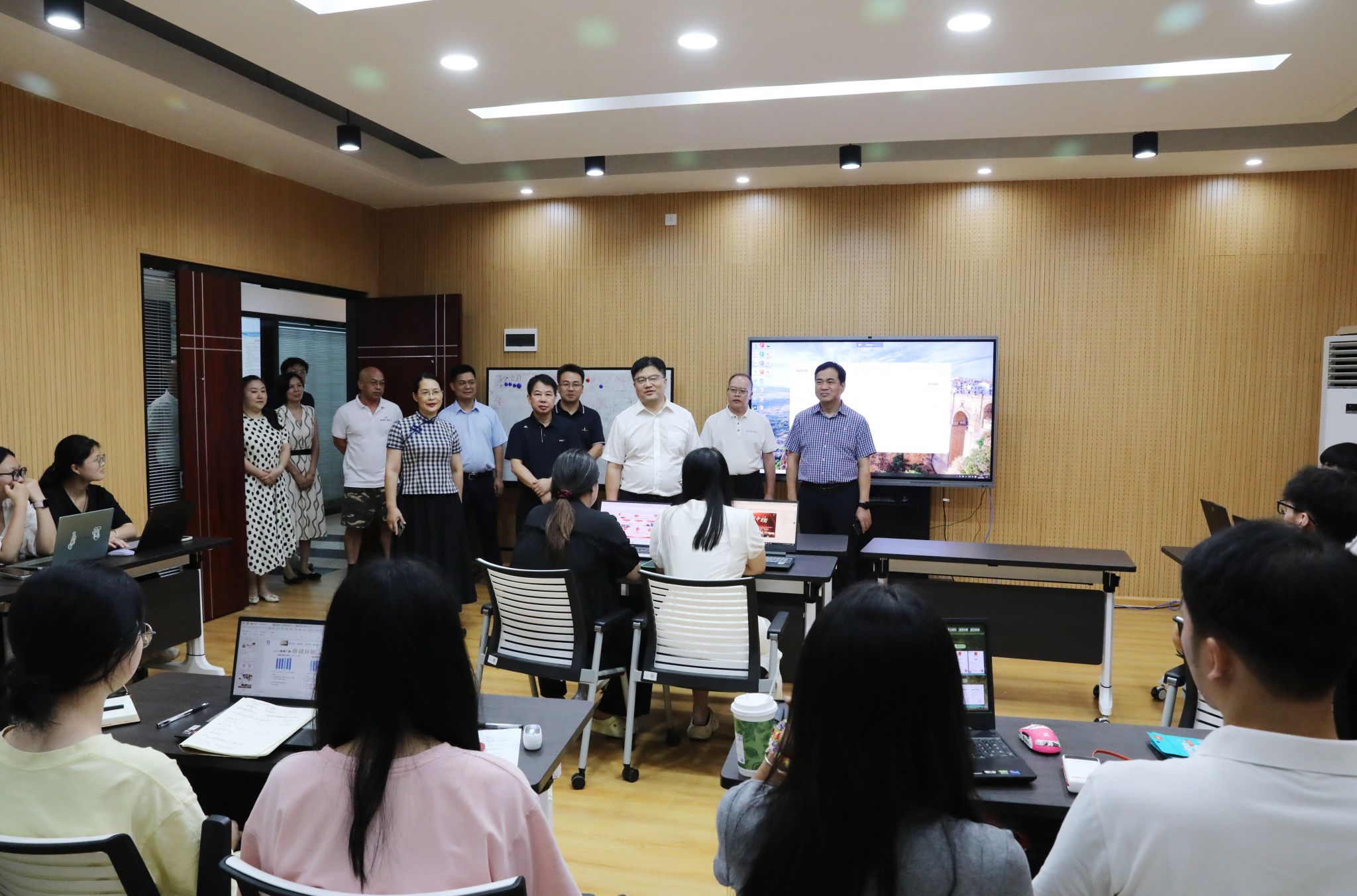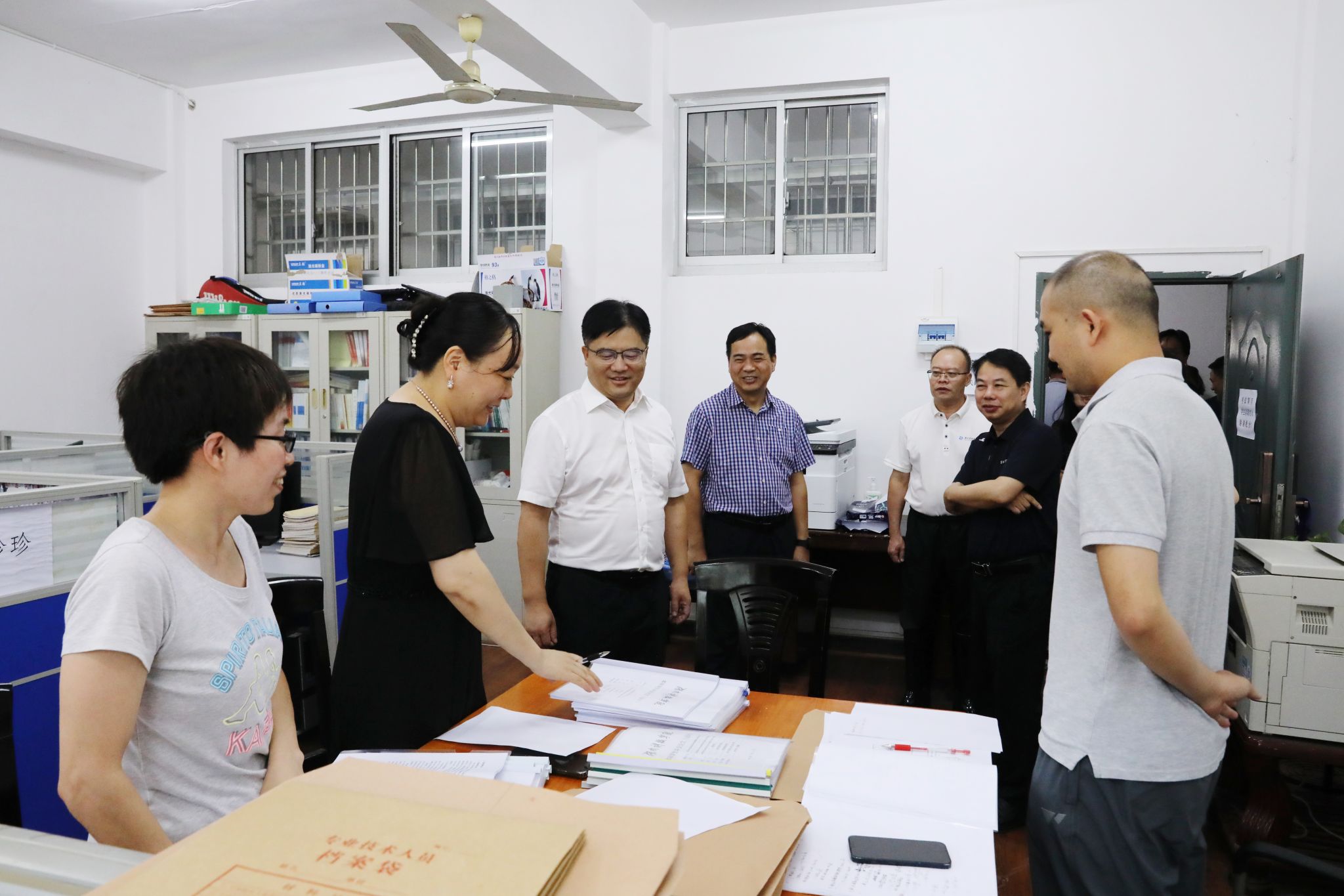 李钢、黄创霞一行来到经济与管理学院、智能制造学院、安博中国与创新创业指导处等地,与奋战科研一线教师团队、招生录取工作人员、备战创新创业大赛师生等进行深入交流,深入了解今年学校招生计划、录取进程及生源质量等情况,勉励备赛师生精心准备、刻苦训练,以最饱满的精神状态参加比赛。大家还来到荷园食堂、荷园三舍、南门、新校区等地,实地查看暑期项目建设施工情况。李钢、黄创霞等叮嘱工作人员要统筹好发展与安全,时刻将安全放在首位,同时要注意防暑降温,高质量推进项目建设。