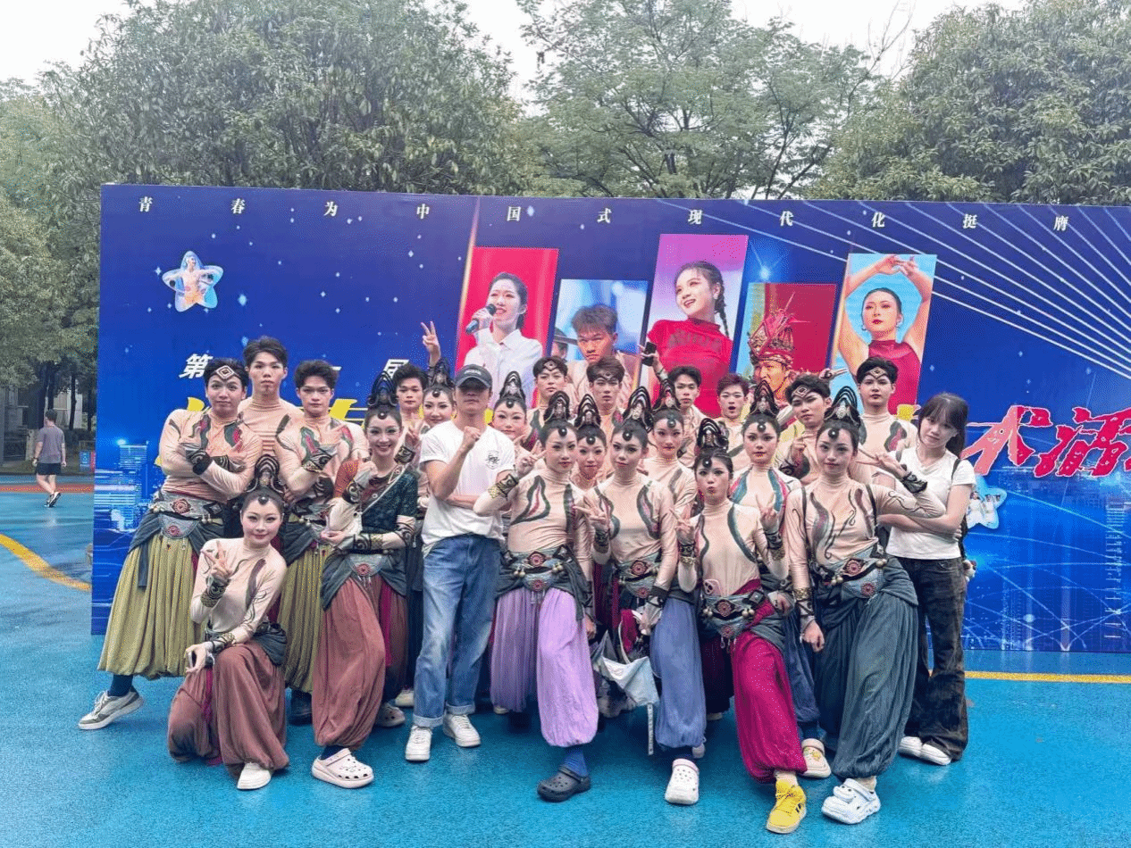《铅华·满壁》以敦煌壁画为灵感源泉,将千年壁画的灵动神韵与现代舞蹈语言深度融合。该作品由音乐与舞蹈学院舞蹈系青年教师刘强指导,22名2023级学生参演。历经十个月的高强度训练,团队从全省各市州高校推荐的60部决赛作品中脱颖而出,以精湛的技艺和深厚的文化内涵,诠释了传统文化的当代生命力,展现出科院学子积极向上的艺术追求与青春风采。