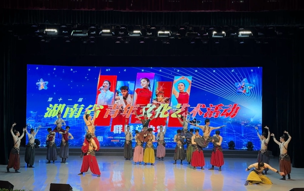 本网讯(通讯员 闫倪)近日,由共青团湖南省委、湖南省教育厅、湖南省科学技术厅共同主办的第十一届湖南省青年文化艺术节群舞总决赛在长沙举行。我校音乐与舞蹈学院舞蹈系2023级学生演绎的敦煌主题群舞《铅华·满壁》凭借出色的艺术表现,以96.72分的总分荣获金奖(第五名)。