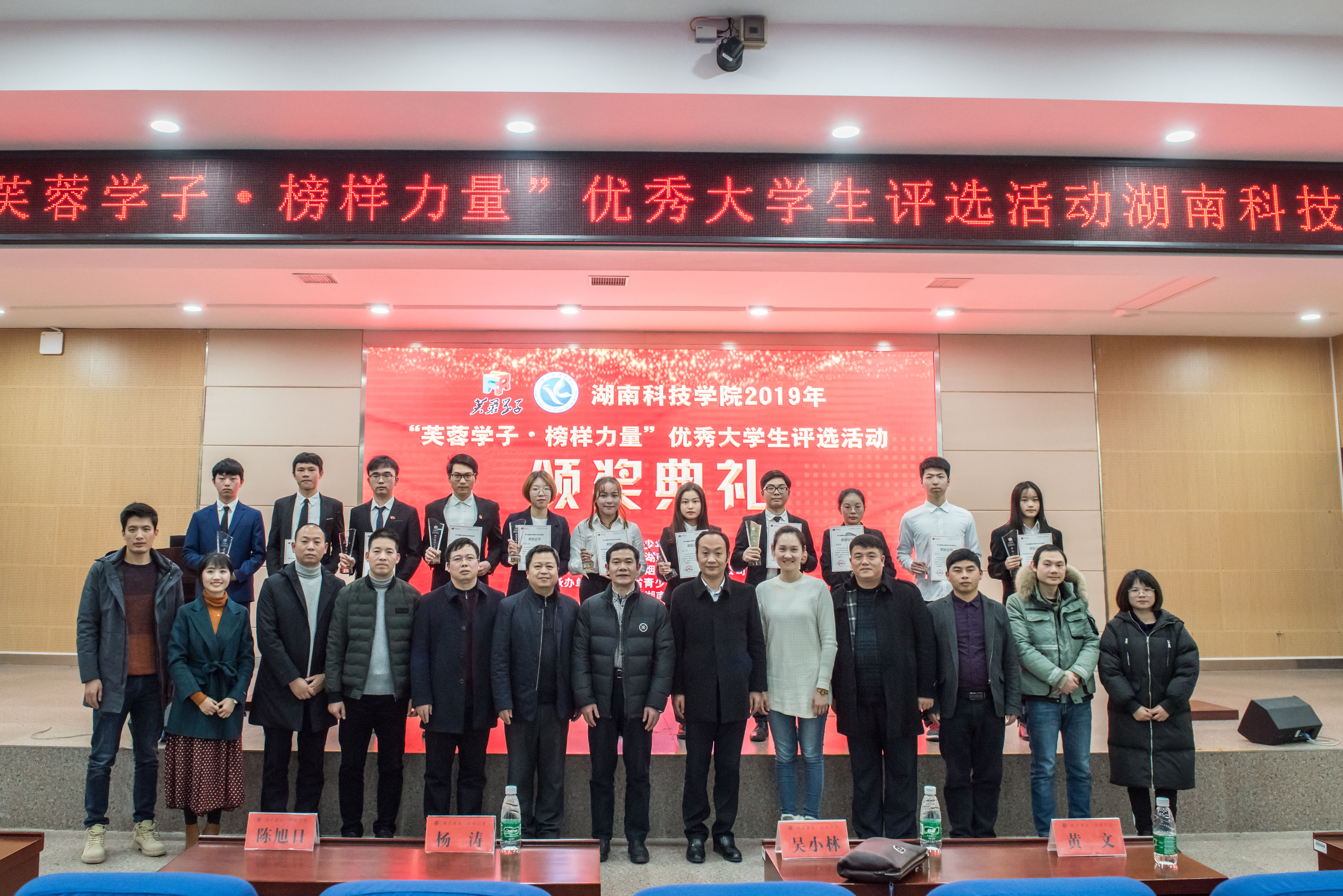 本网讯 12月26日晚,第十四届“芙蓉学子·榜样力量”安博官网app优秀大学生评选活动颁奖典礼在潇湘大讲堂举行。副校长吴小林,宣传统战部、学工部、教务处、科技处、团委、就业创业指导中心等职能部门负责人及600余名学生代表参加。