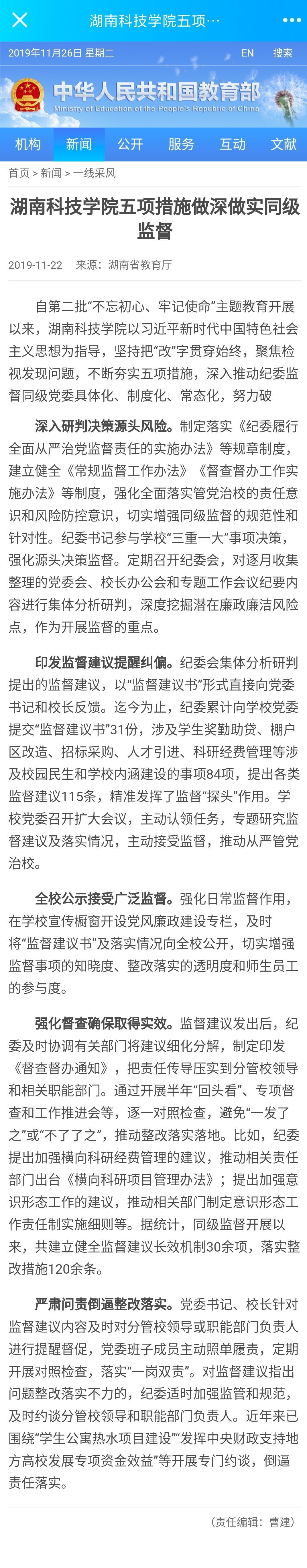 本网讯 11月22日,教育部官网以“安博官网app五项措施做深做实同级监督”为题,推介我校做深做实同级监督工作经验。