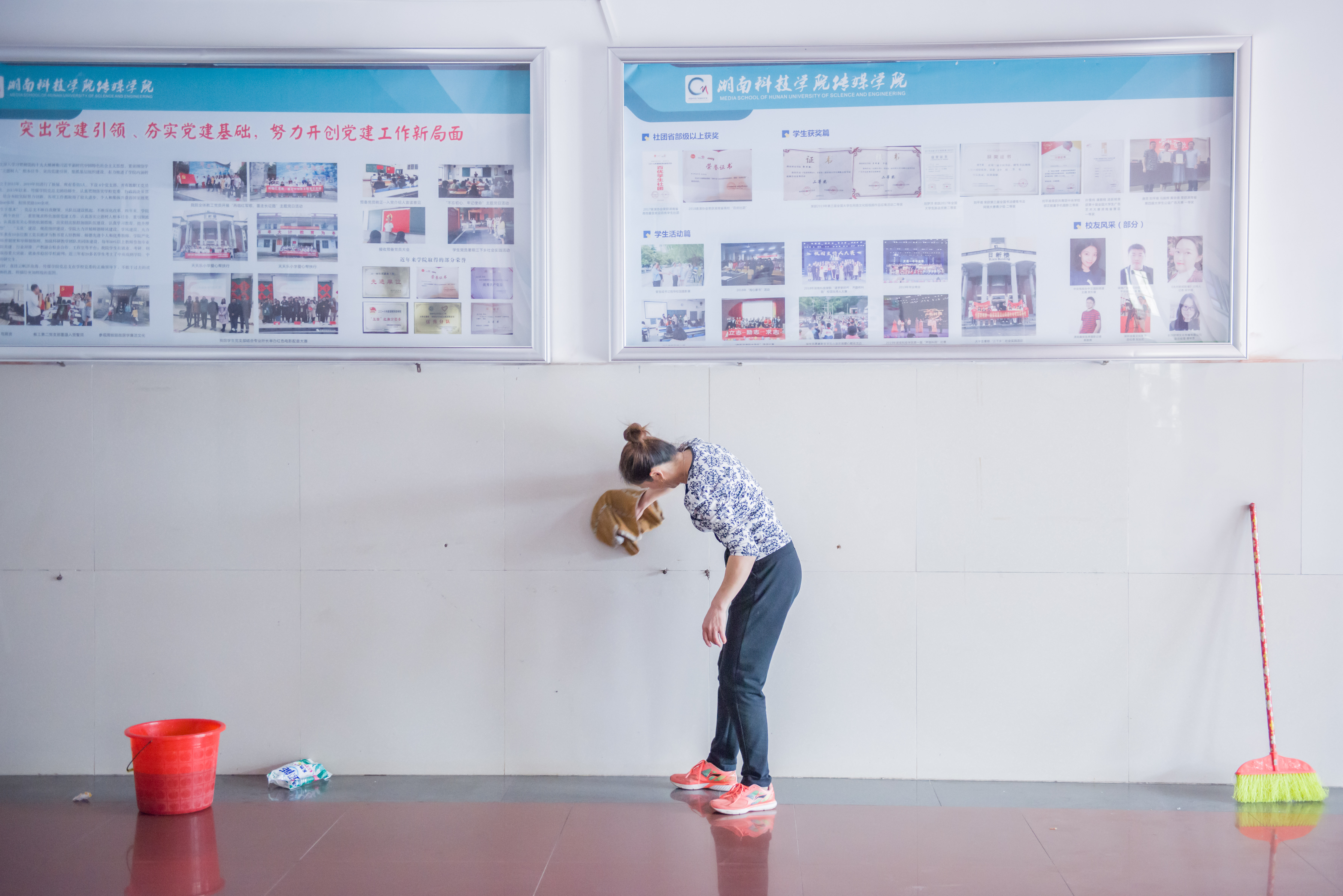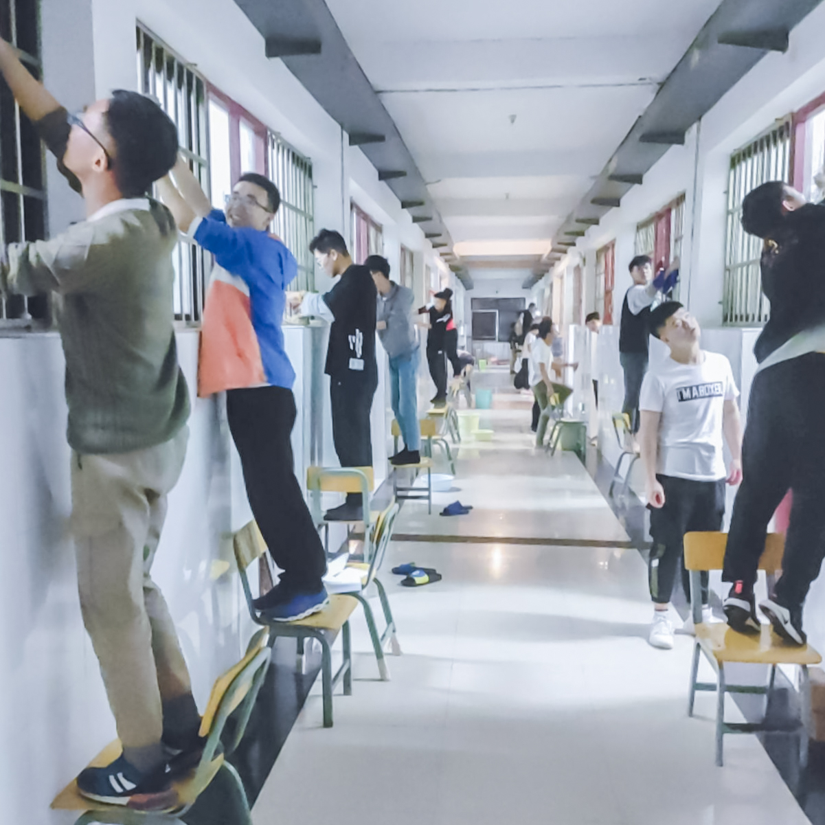 老师和学生利用课余时间打扫寝室和教学区卫生
