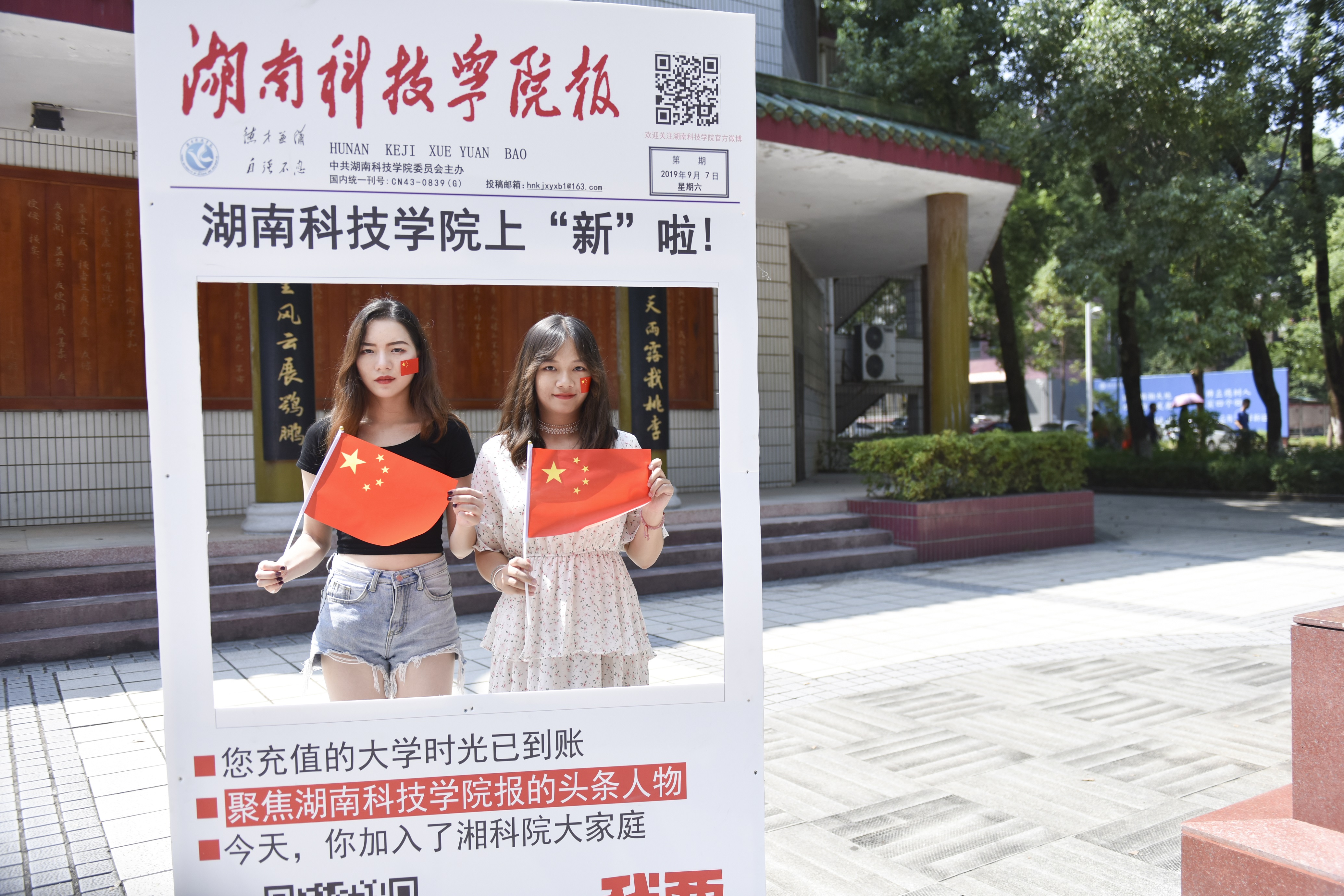 当天,学校开展“我在科院,向祖国告白”的系列活动,“我用三行情诗向祖国告白”、“开学日,手持国旗上校报头条”······用各种温情的方式告白祖国,吸引了众多新生的参与。新生们纷纷拿起笔写下对祖国的告白语,不少新生还手持国旗合影留念,表达对祖国的热爱。